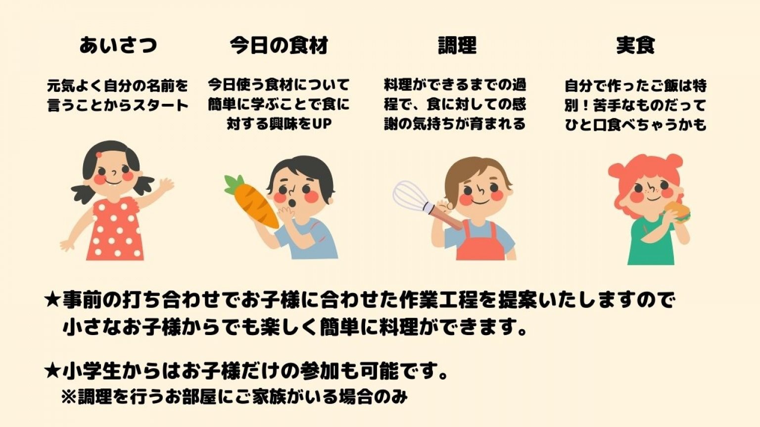 また、レッスン動画はいつでも見返せるように参加いただいた方限定でご提供させていただきますので、当日お子様の体調や気分で調理から脱落してしまった場合でも安心です♪