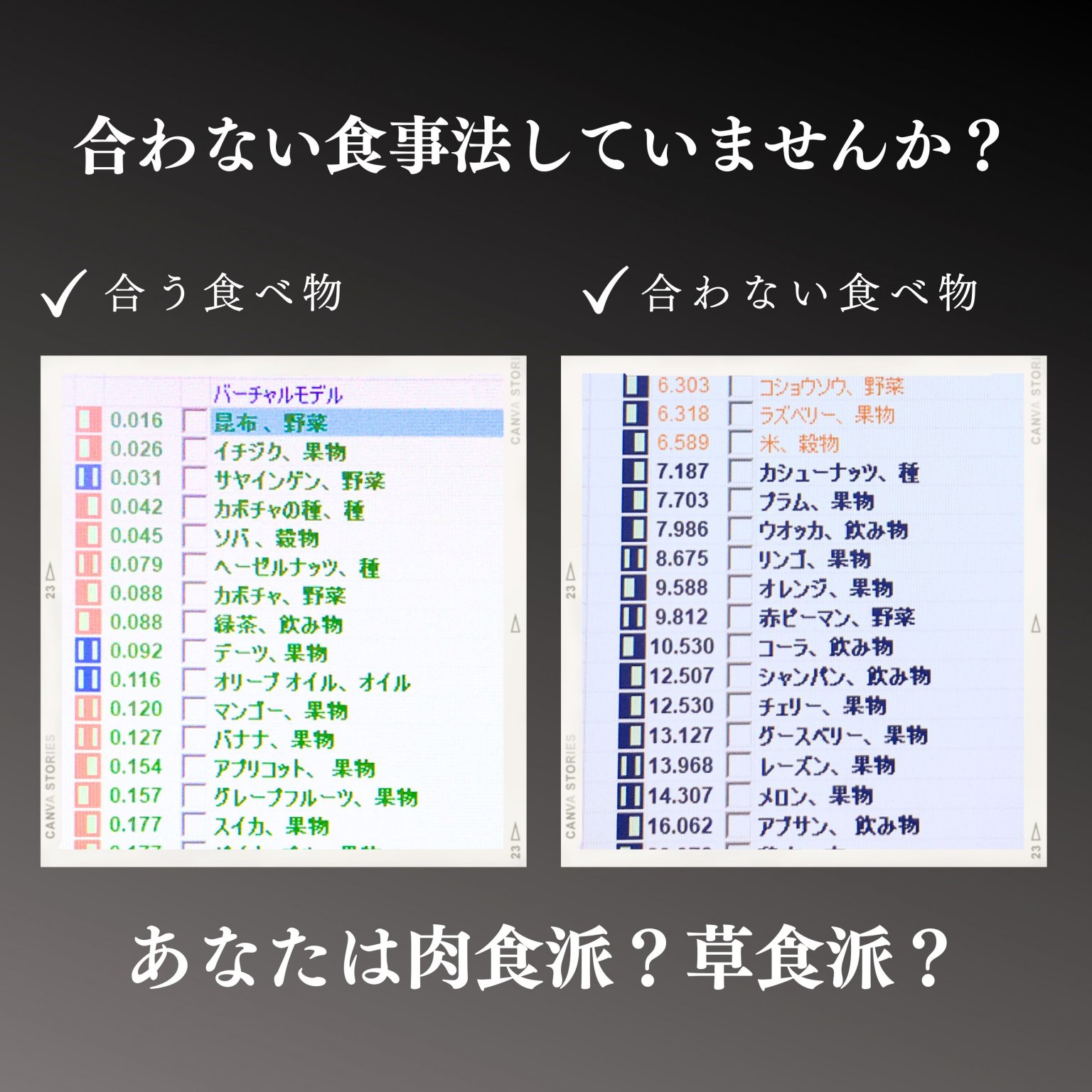 ・状態に合う食べ物(飲み物)、合わない食べ物(飲み物)