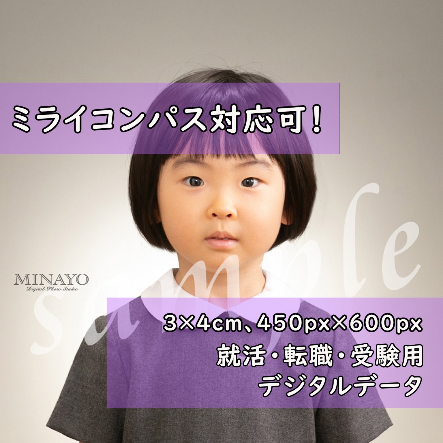 ◇ ミライコンパス対応可!【 修整済み・デジタル データ】3×4cm 450×600px 就活・転職・受験用
