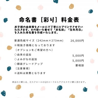 その想いを乗せて「お名前」「生年月日」を入れた命名書を作成いたします。