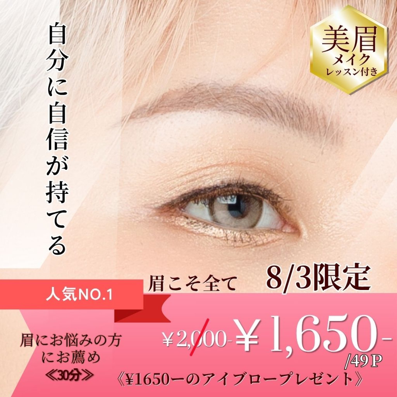 自分の眉わからない。おでこなんて出せない。眉が非対称。 自分に合ってる眉がわからない。描き方がわからない。整えたがわからない。 そんな方大集合!!! 綺麗な眉と整ったあなたを生み出します。 前髪で隠す眉辞めて自分に自信もって毎日を楽しもう。