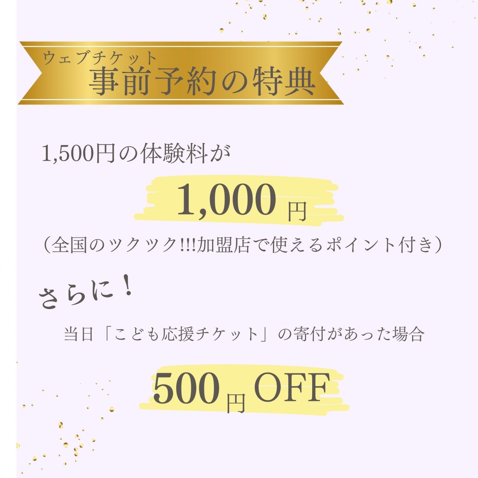未来応援チケット利用可能な場合は1名につき500円で体験できます。