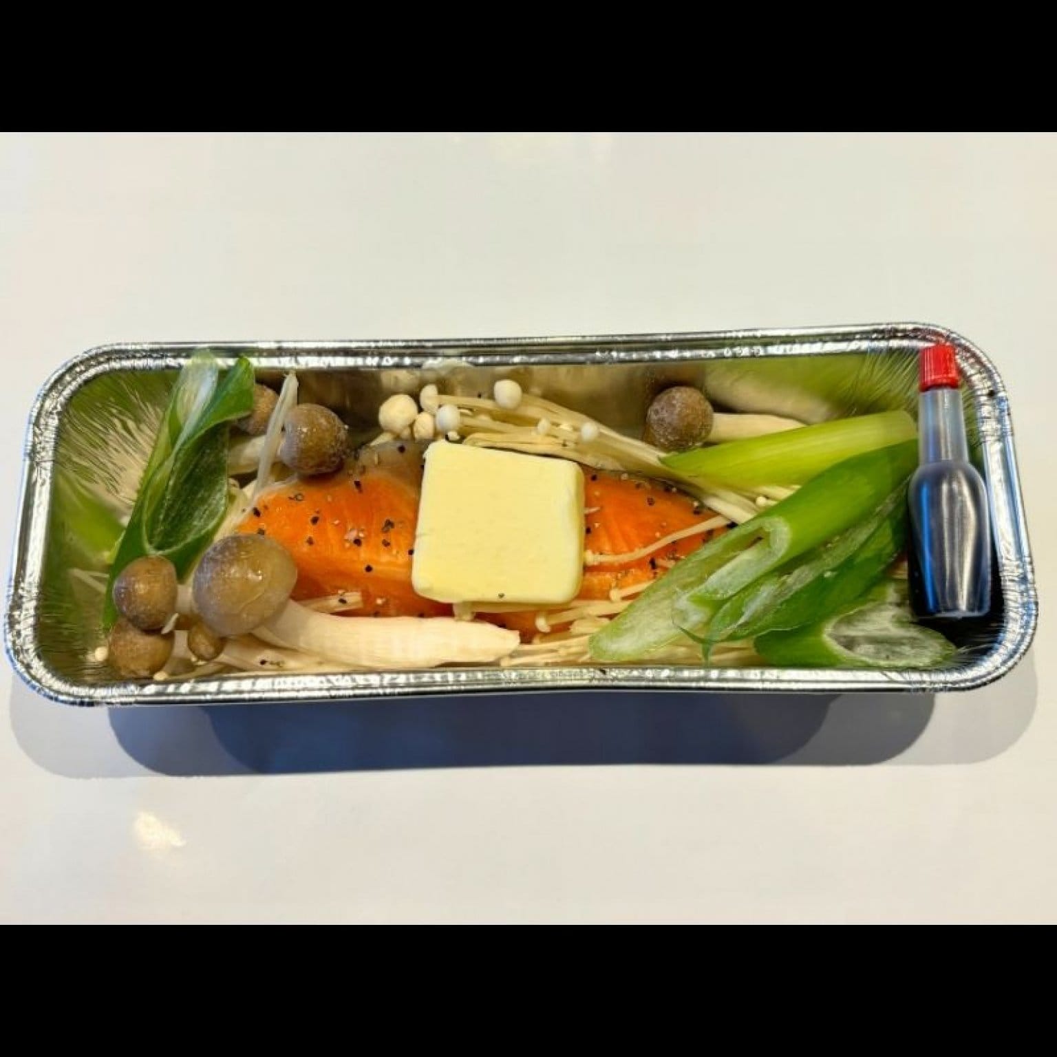 ■原材料:サーモン(チリ産)、バター、塩コショウ、キノコ類、ねぎ、玉ねぎ