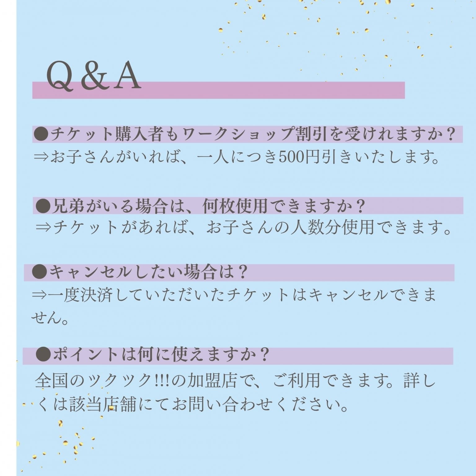 A:返金はありません。未使用分は次回以降の同ワークショップに繰り越し、必ず子どもの体験に充当されます。