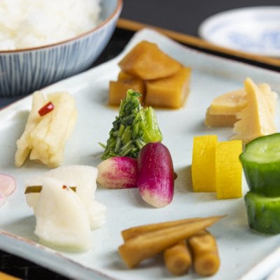 まずは当店自慢の旬のお漬物を白ご飯とともにお楽しみください。