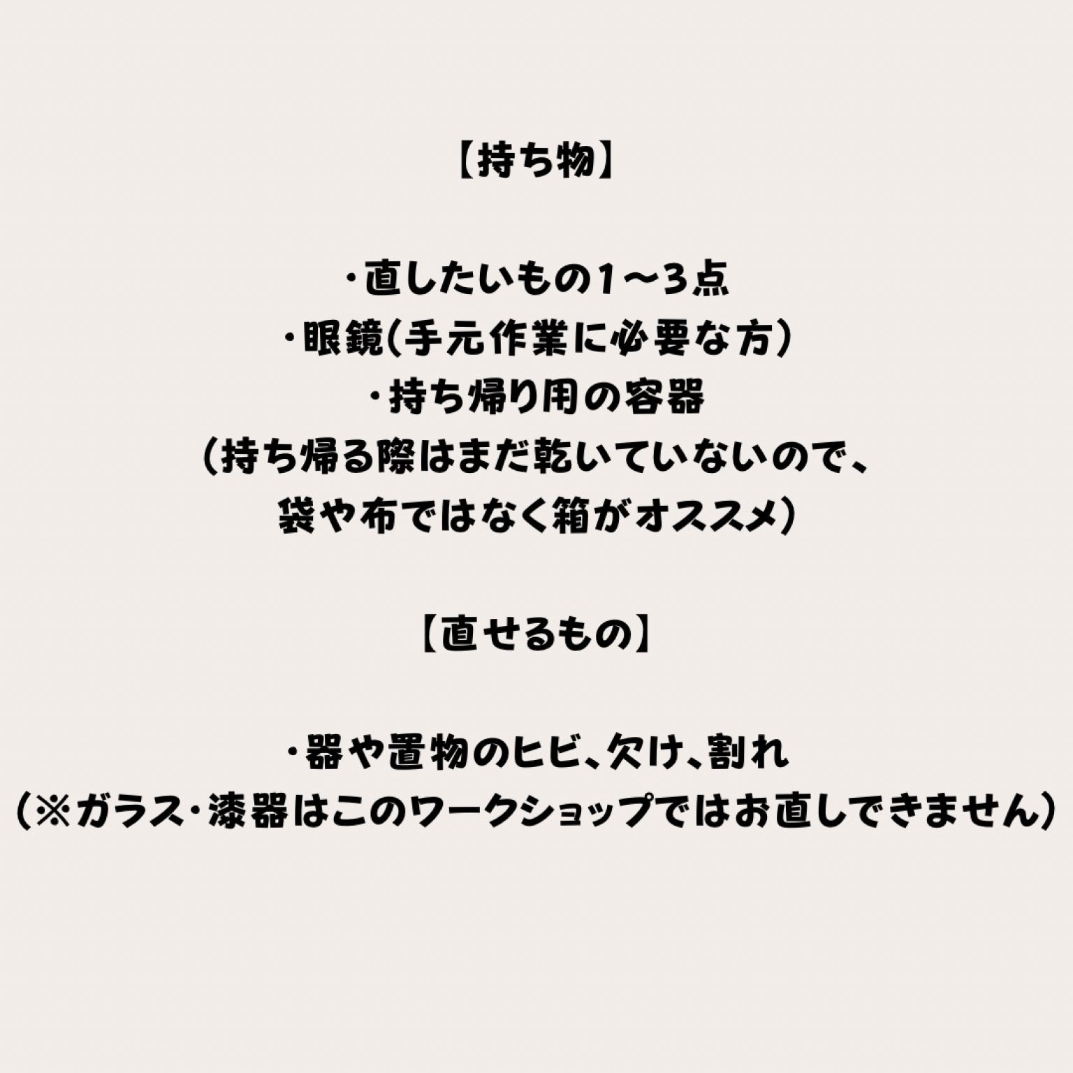 (※ガラス・漆器はこのワークショップではお直しできません)