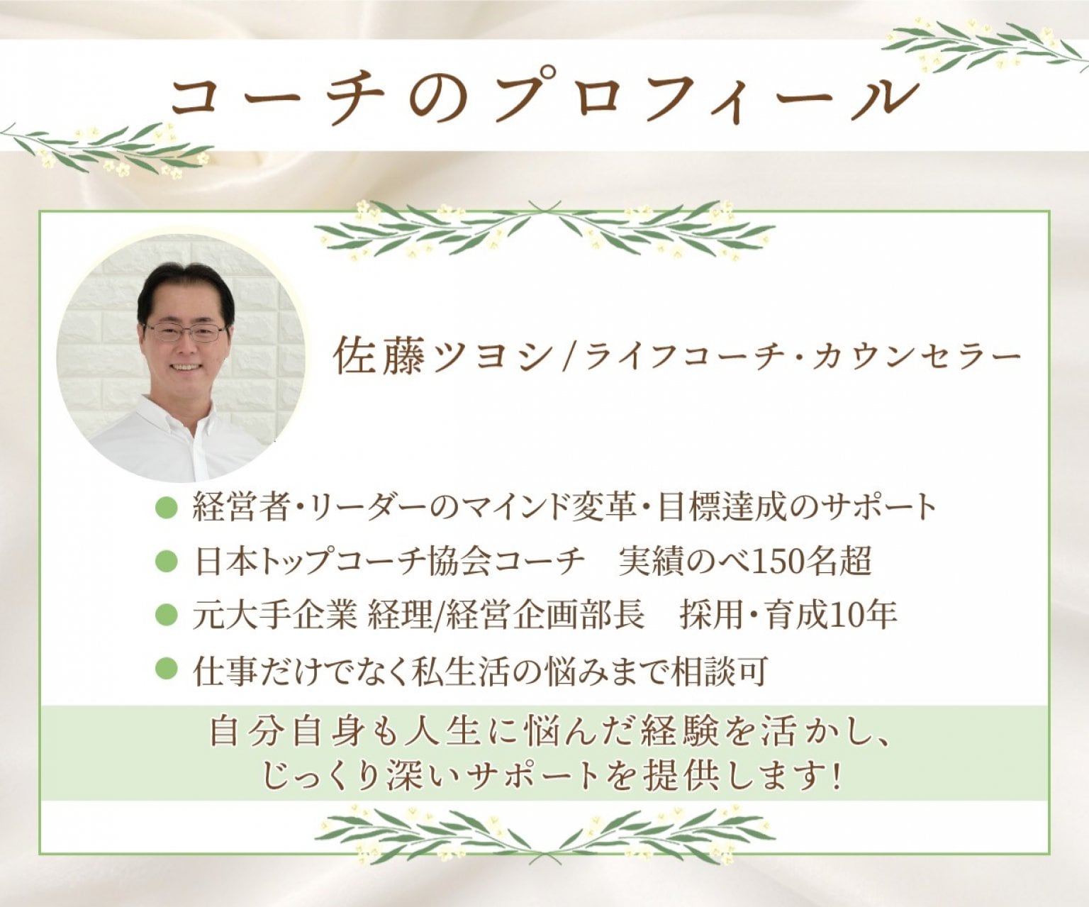 ライフコーチ/カウンセラー 佐藤ツヨシ