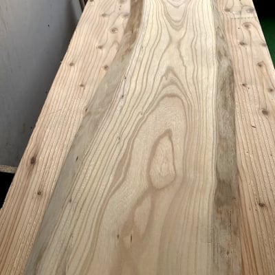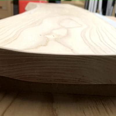 オーダーサイズにカット、加工、磨いてお渡しします。写真のサイズは幅が1000ミリ、奥行きが一番出ている所で28センチ、一番引っ込んでいる所で24センチの物です。厚みは30ミリ〜38ミリくらいです。