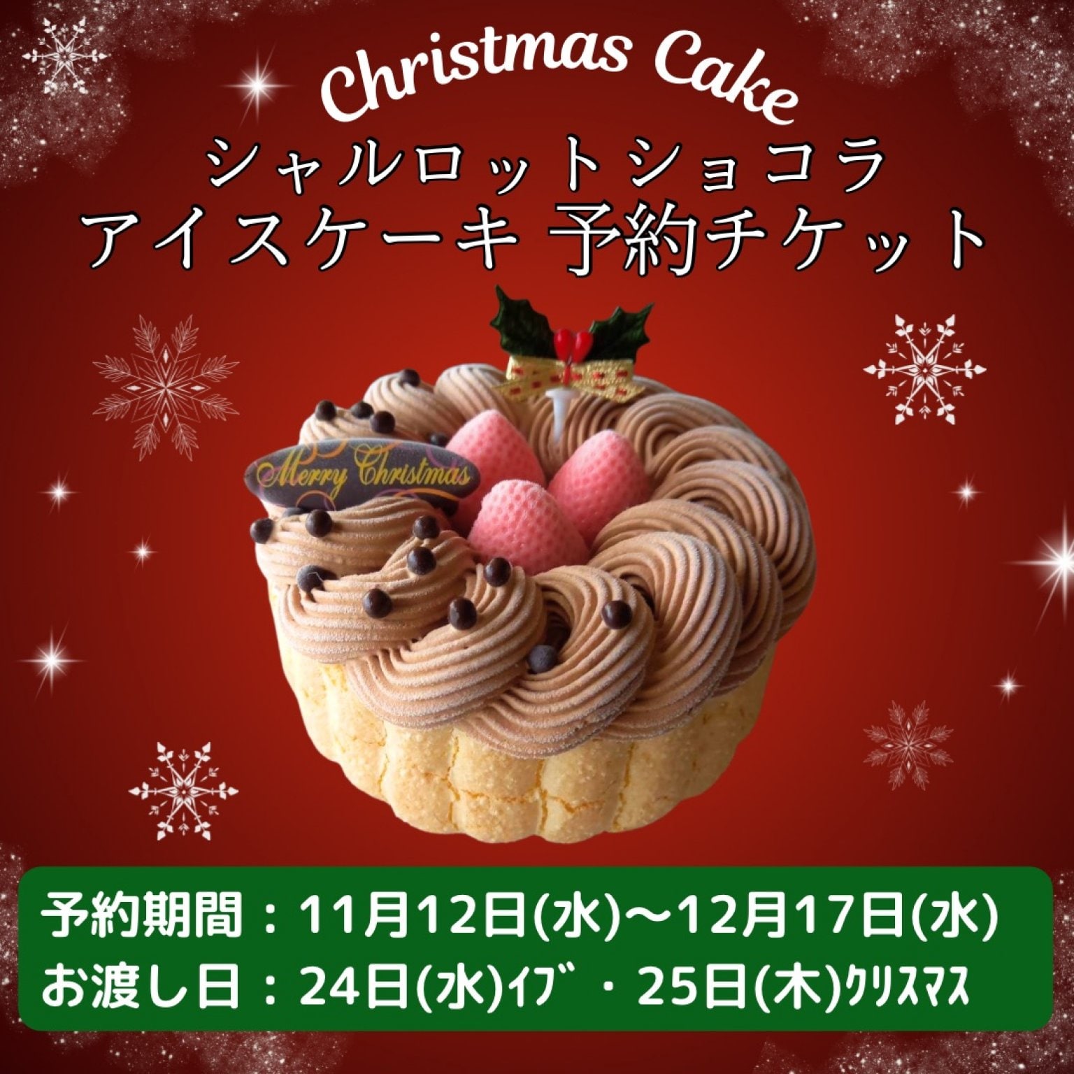 飾りにイチゴシャーベットとチョコレートアイスを絞った贅沢なアイスケーキです。