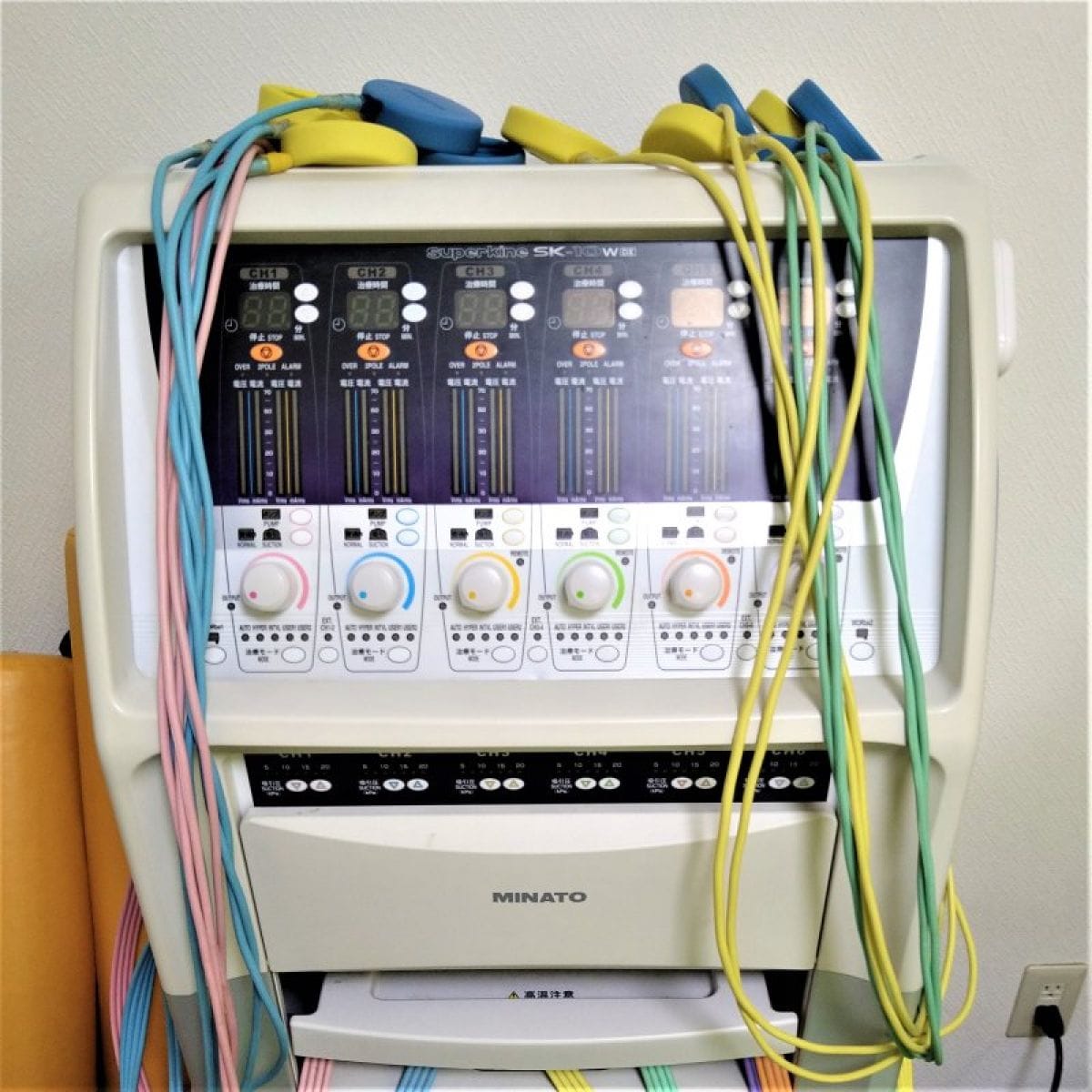 腰痛、背部痛など体幹の施術と機械の組み合わせ。