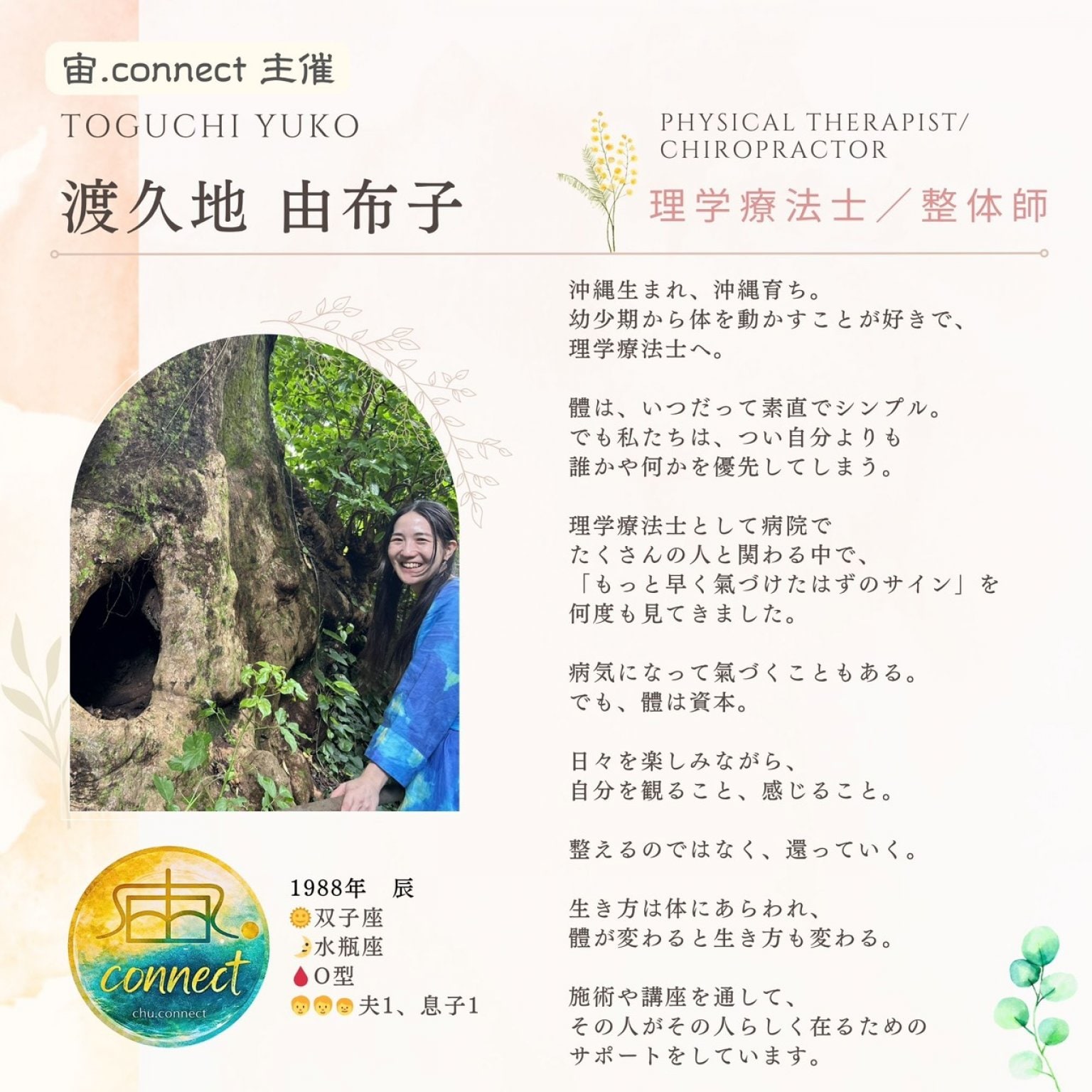 沖縄壺屋にある整体サロン「宙.connect」主催。