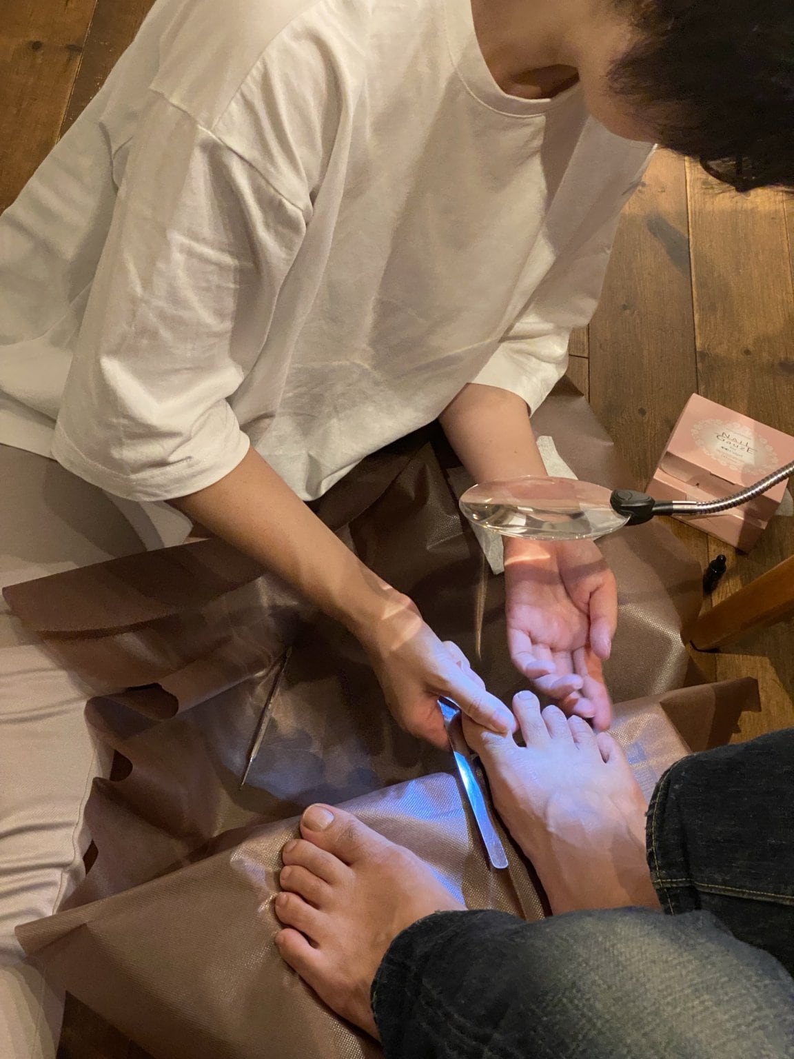 その日の足の状態に合わせて、負担の少ないケアを心がけています。