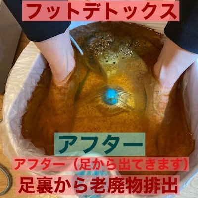 フットバスの中のお湯がマイナスイオンに変換され、体内のプラスイオン(有害老廃物)と結合して、