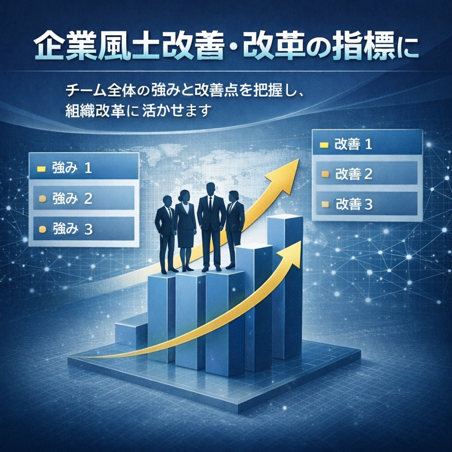 ②チーム全体の強みと改善点が明らかになり、企業風土改善・改革の指標になる。