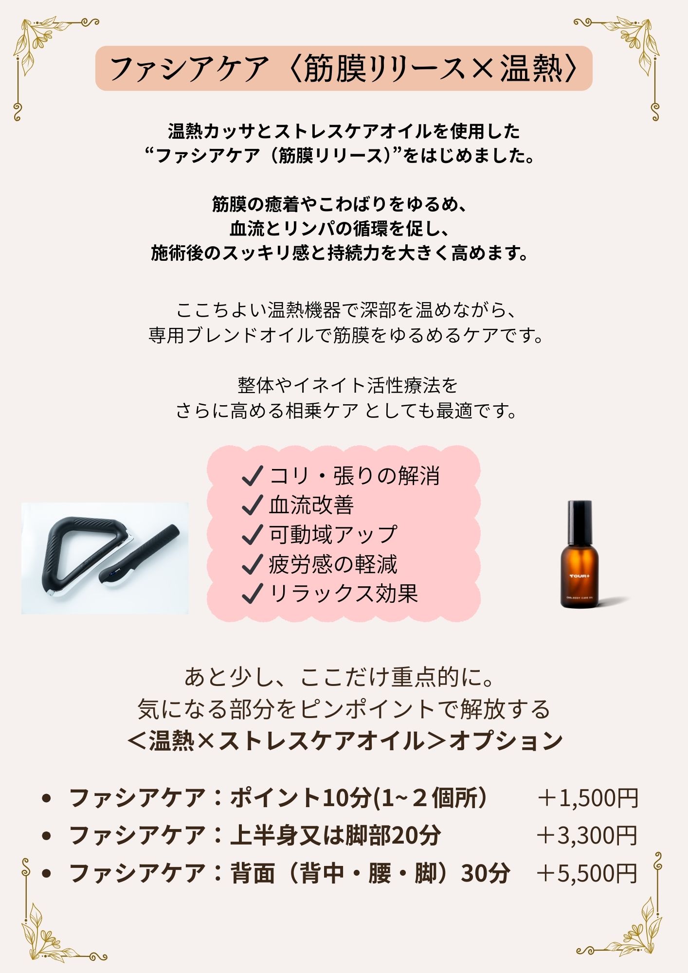 | ショップ名 | 『心身メンテナンスspace天の実 浦和』イネイト活性療法 /温熱カッサ×ストレスケアオイルでファシア(筋膜)ケア |