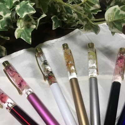 手持ち部分は、ハーバリウムオイルで作製しています。
