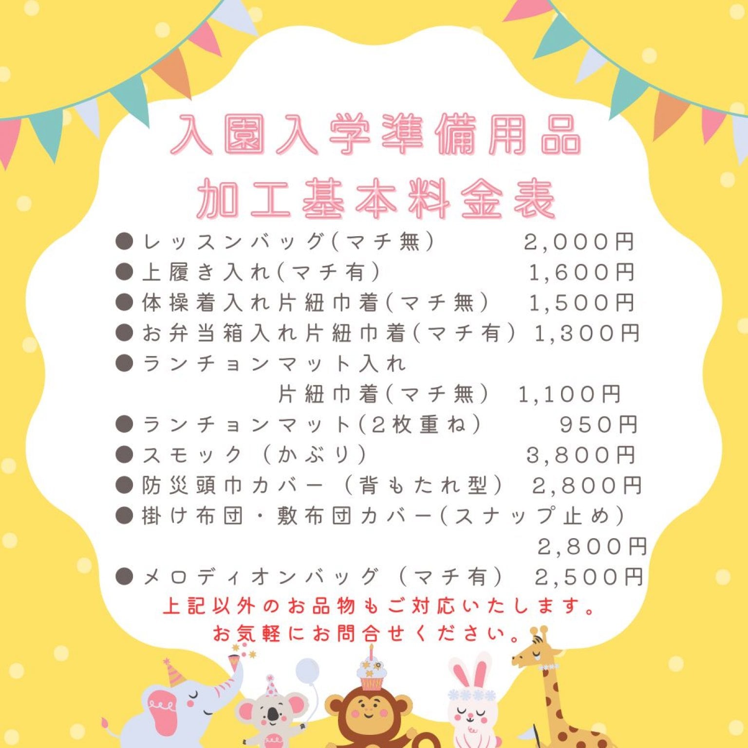 ●料金表にない物もオーダー承ります。→エプロン、三角巾など