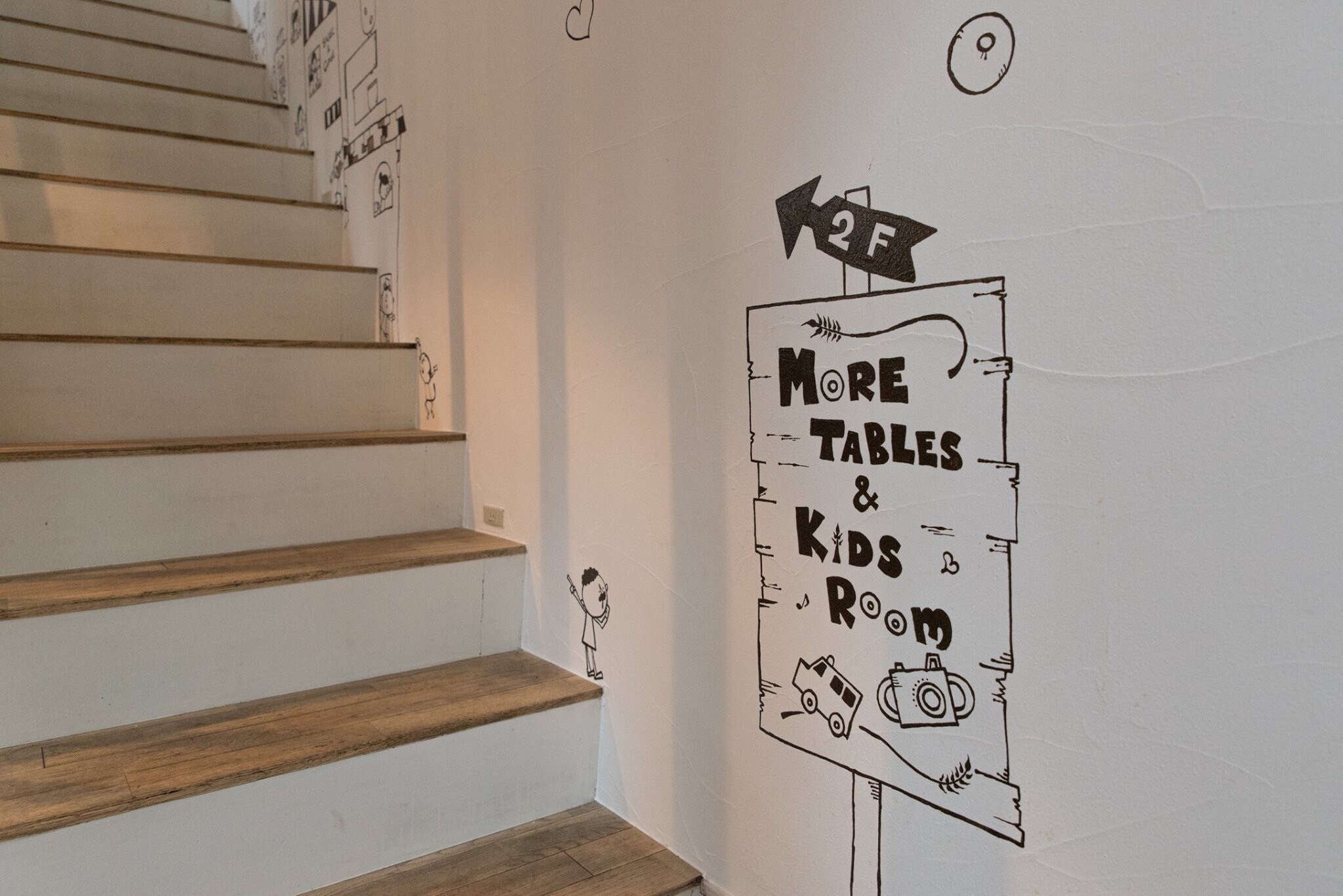 お店に入ってすぐの大きな壁から二階に続く階段に沿って、