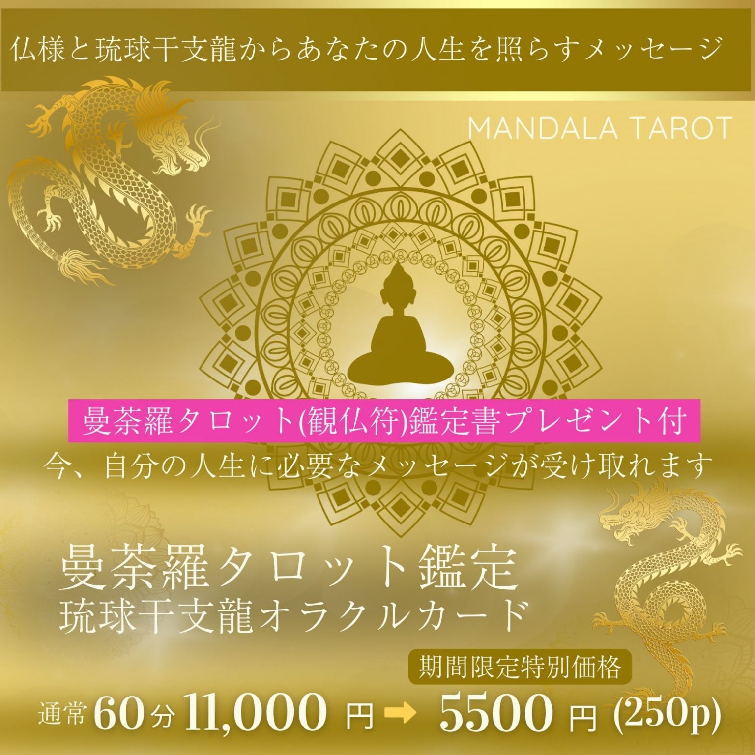 曼荼羅タロット(観仏符)鑑定+琉球干支龍カードから、あなたに必要なメッセージをお届けします。
