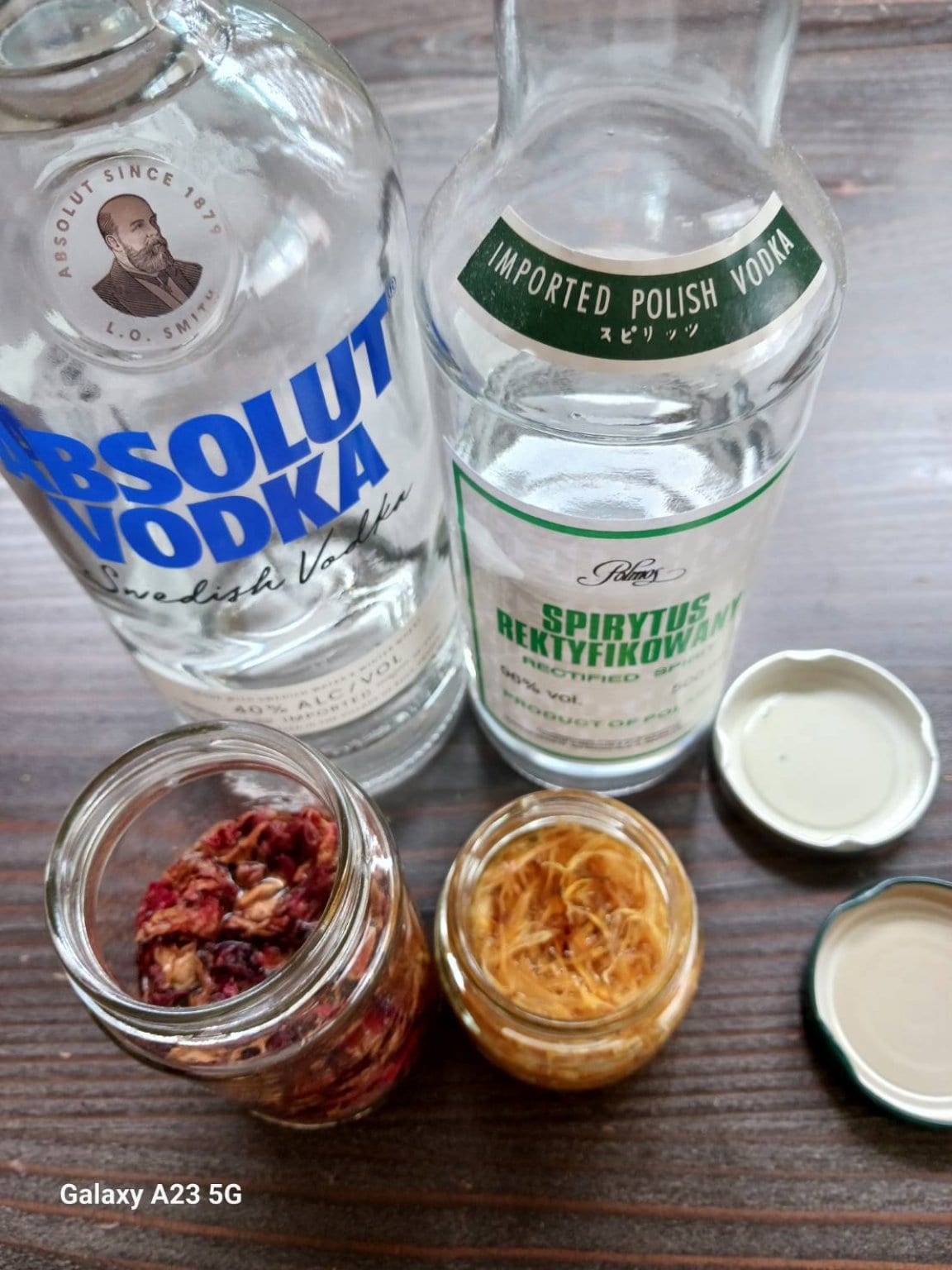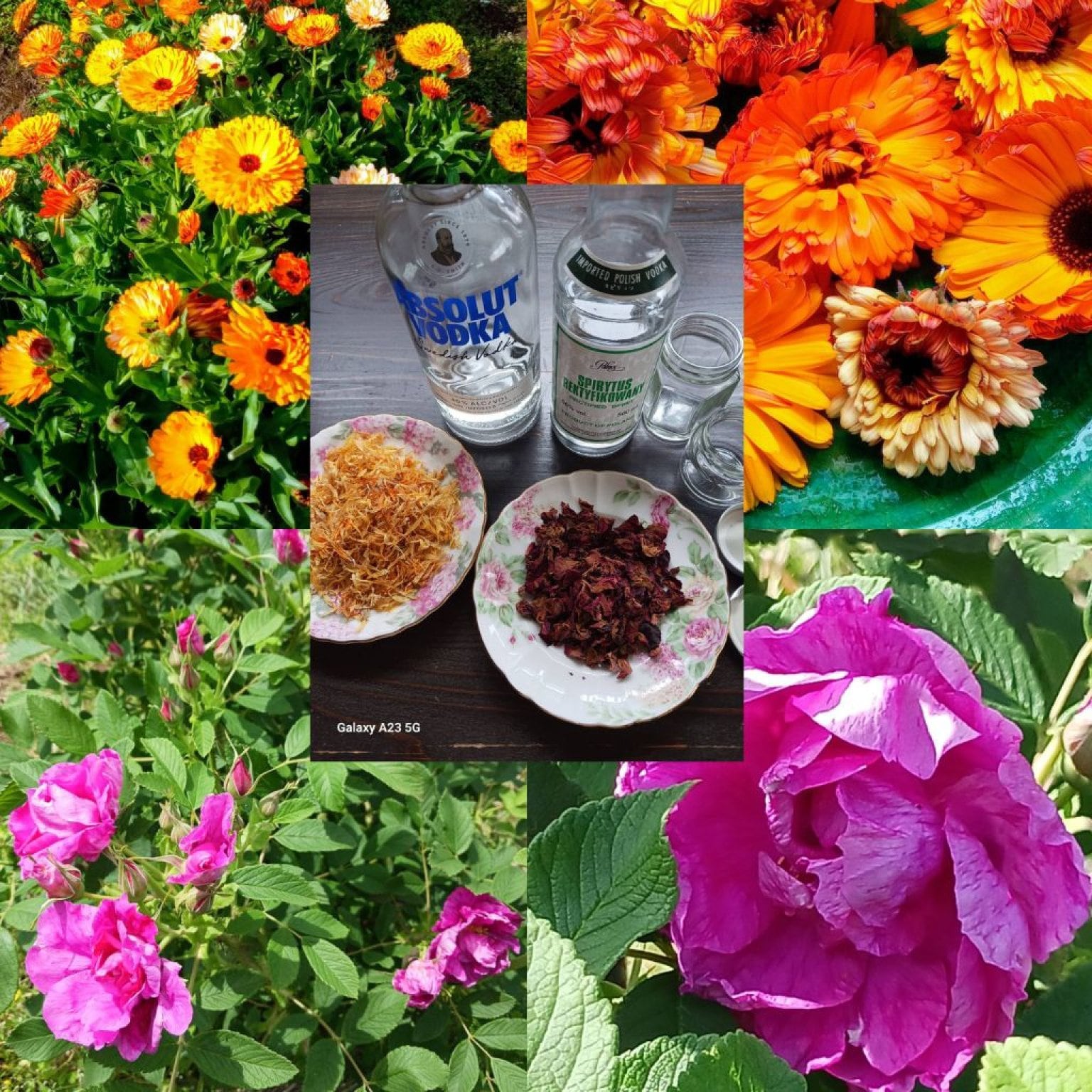 WSはオーガニックのローズにはウォッカ、自社畑の自然栽培のカレンデュラにはスピリタスを使ってチンキ作りをします。
