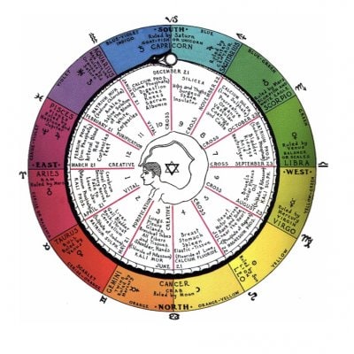 12星座(サイン)は「天空の物差し」と登石先生は語られます。12星座は、天空につけられた番地やエリアのようなもので、太陽の通り道である黄道を12分割したエリアを表しています。そして、各星座は医療占星術では特定の身体部位とも深く結びついていると考えています。頭が牡羊座、首は牡牛座というように、身体の上から順に対応します。12星座を毎月巡りながら、その星座の性質と深く関連するアロマテラピー(精油)・バッチフラワーエッセンス(バッチ博士のフラワーレメディ)・ジェムストーン/エッセンス(鉱石)・ティッシュソルト(シュスラー博士の組織塩)を学び、自然療法を体系化していきます。