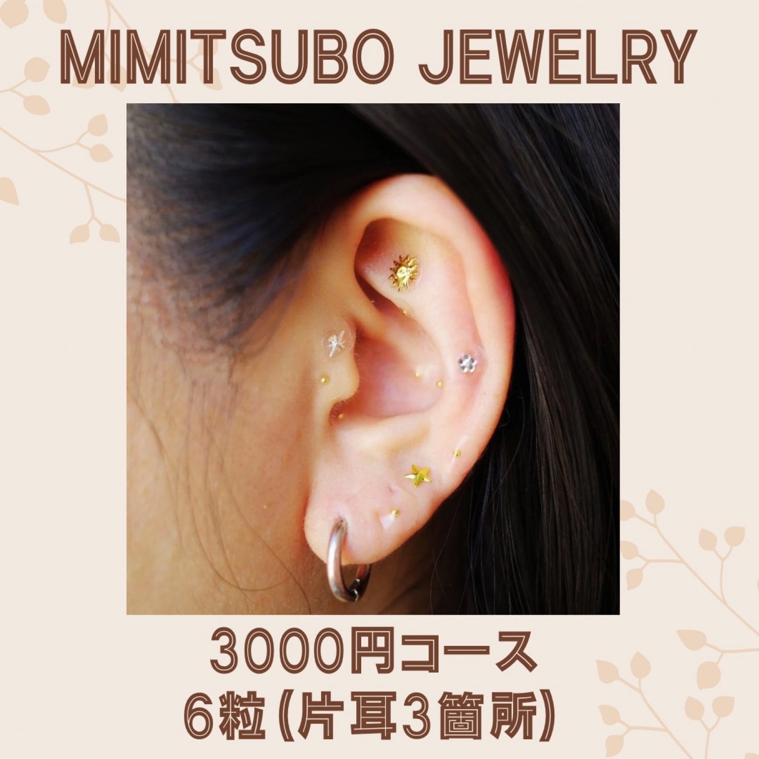 耳つぼジュエリー6粒(片耳3箇所)の施術チケットとなります。耳つぼマッサージ付き。