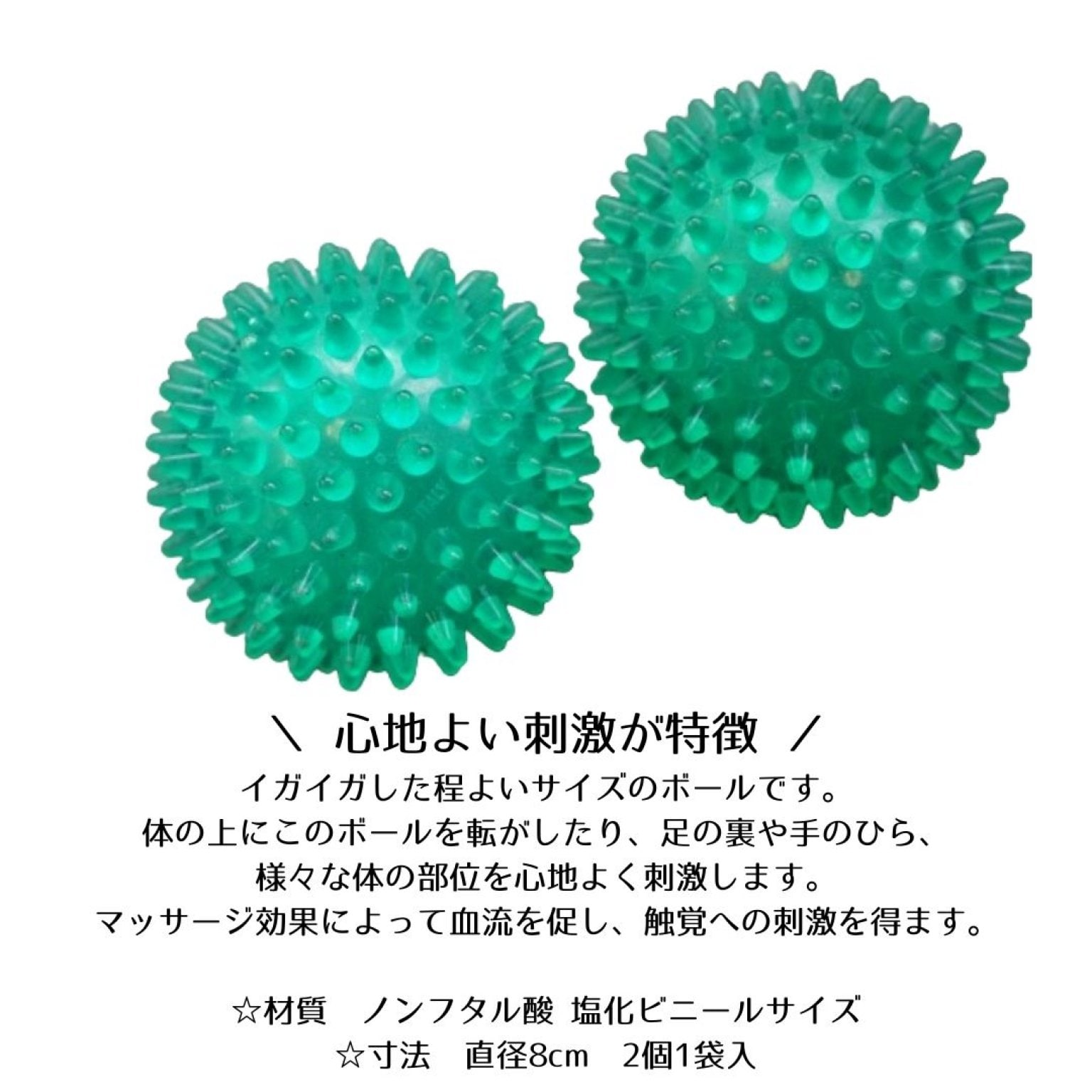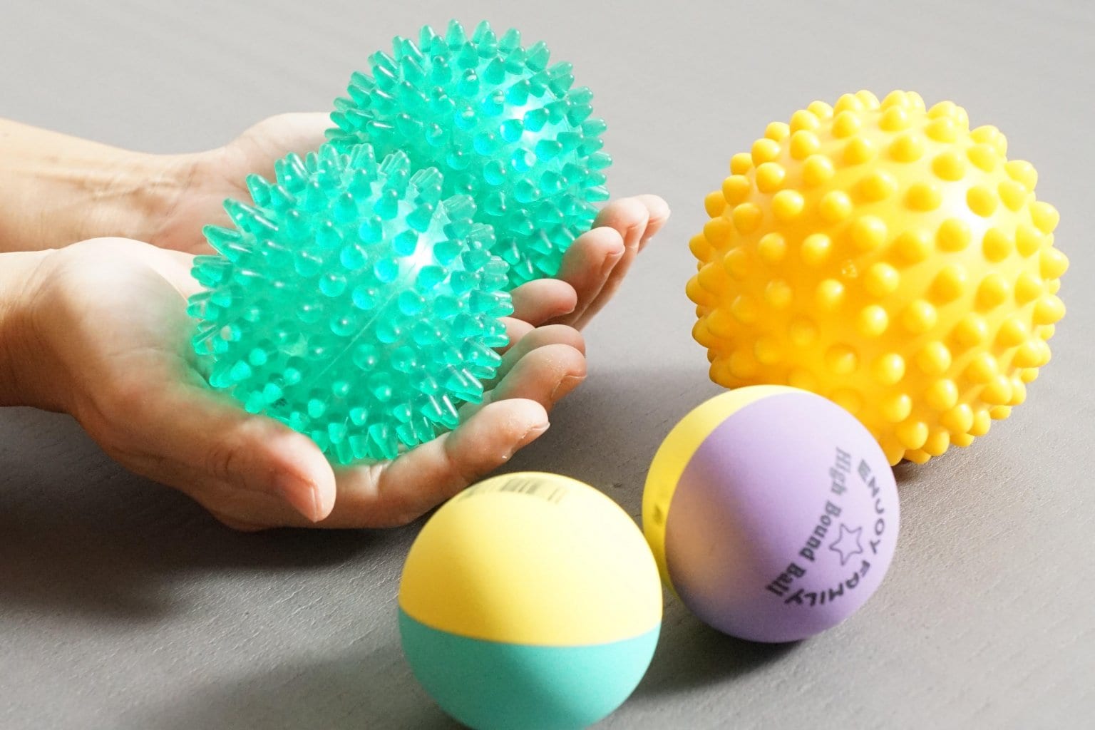 体の上にこのボールを転がしたり、足の裏や手のひら、