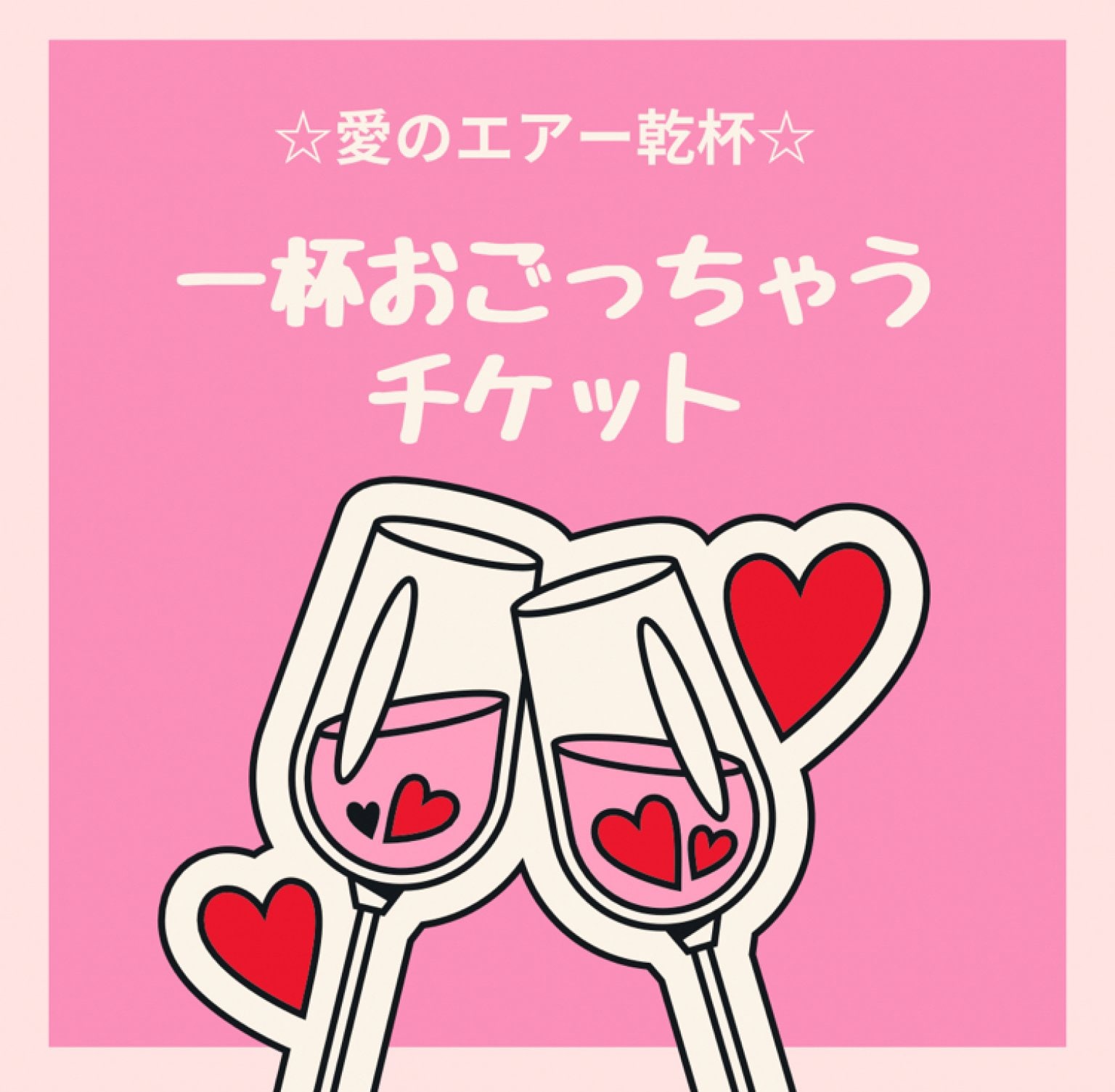 エアー乾杯気分が味わえるよう、いただいたチケットドリンクで乾杯してる写真を(お届け)アップします♪