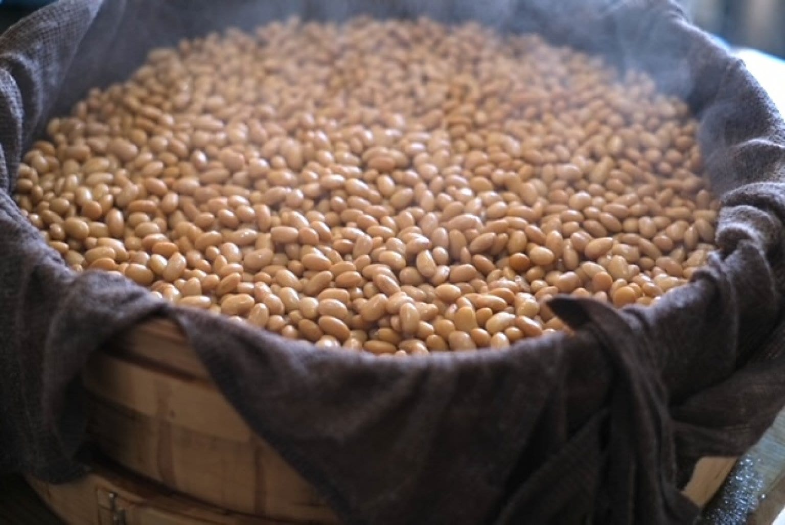 大豆と小麦に純粋培養の麹菌をつけ、醤油発酵の“土台”となる醤油麹を仕込みます。蒸す・炒る・混ぜる工程の意味を理解しながら、酵素がどのように旨みと香りの基礎をつくるかを学びます。