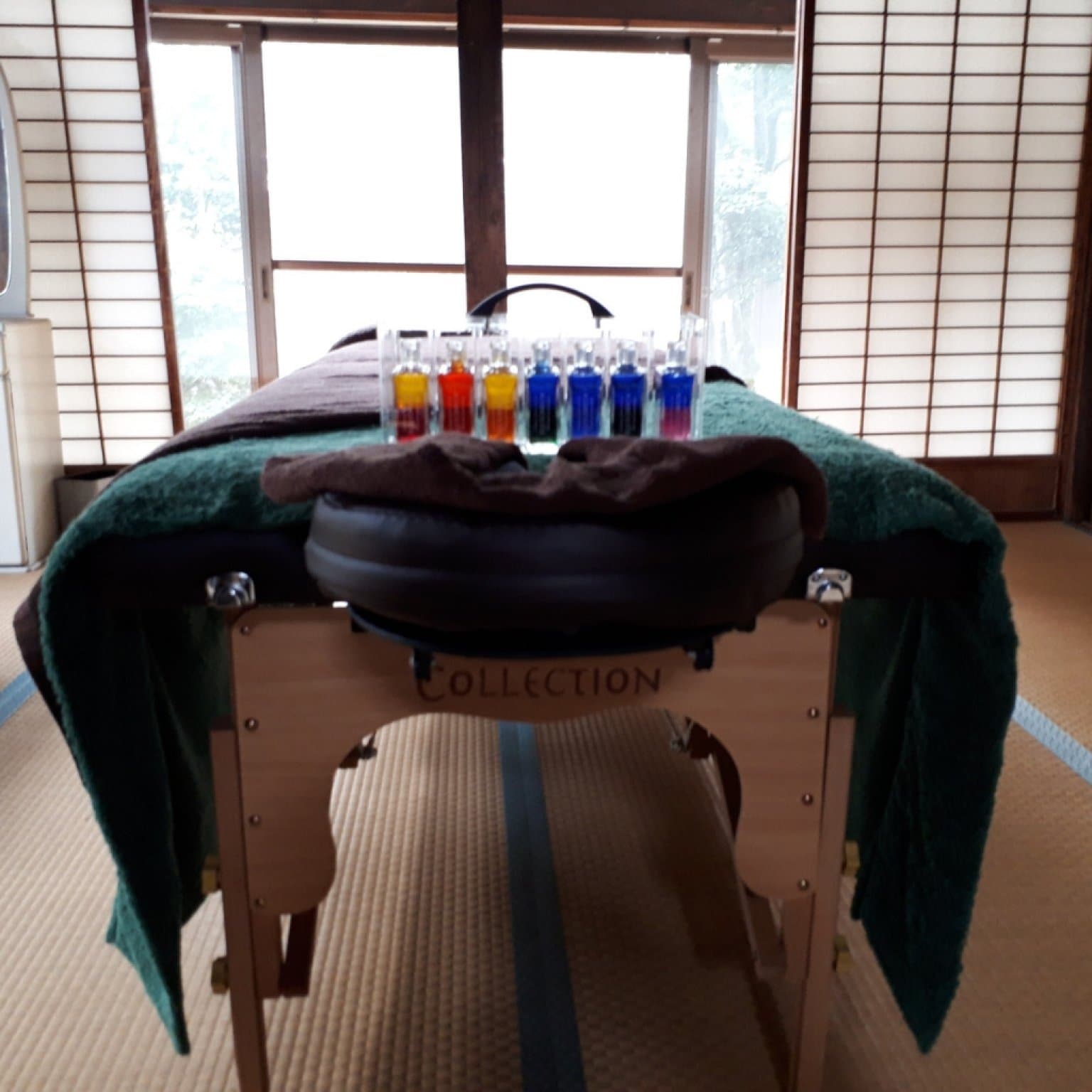 オーラソーマのたくさんのプロダクツ(商品)を使った約90分のオイルトリートメントです。