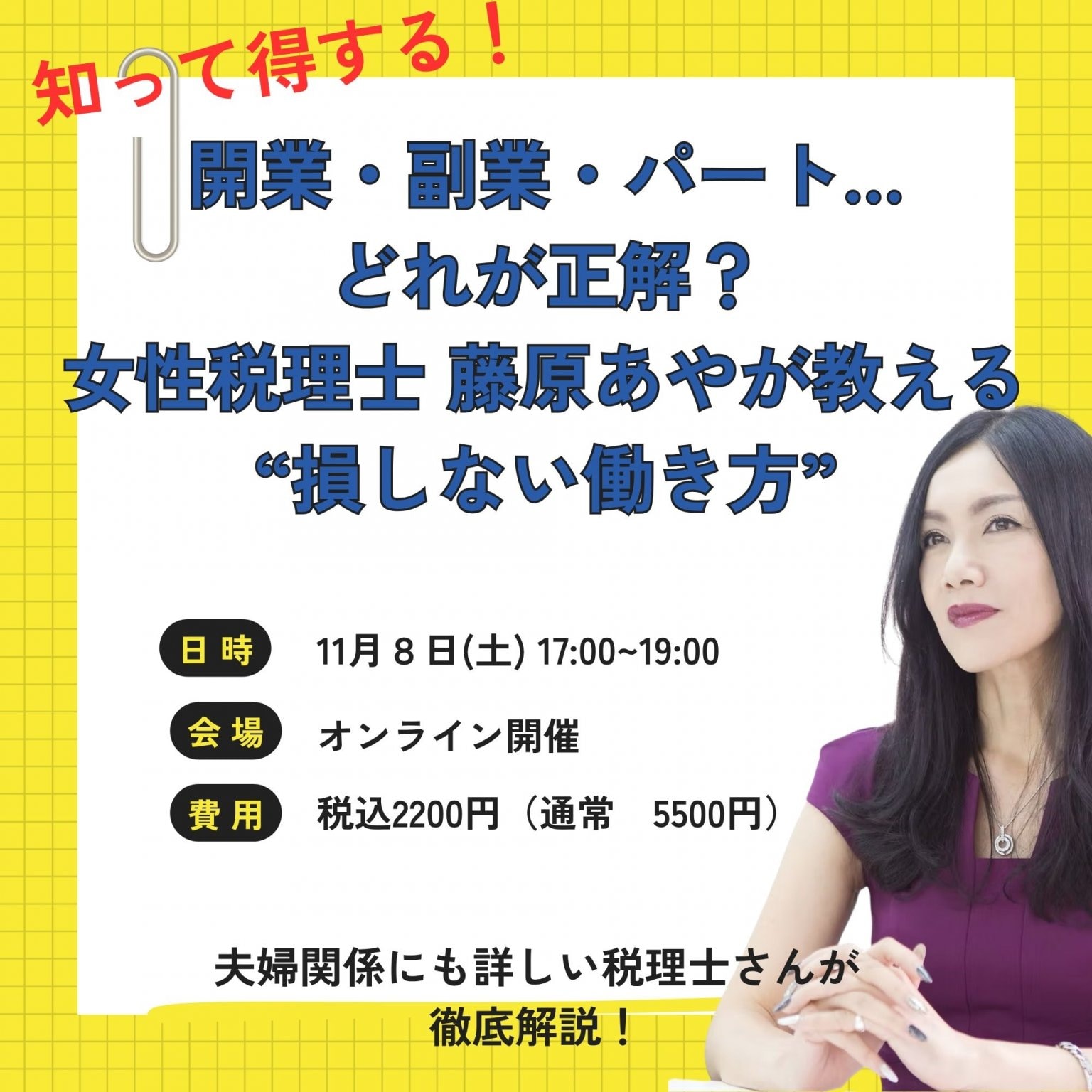 そんな女性のために、税理士と夫婦カウンセラー、両方の視点を持つ藤原先生が、**“心の声”と“お金の現実”**に本音で向き合う方法を伝授してくれます。