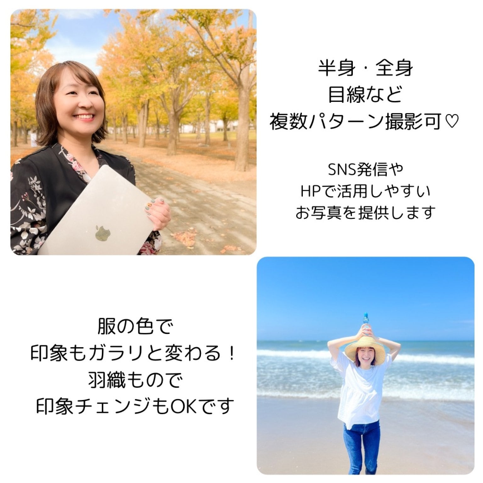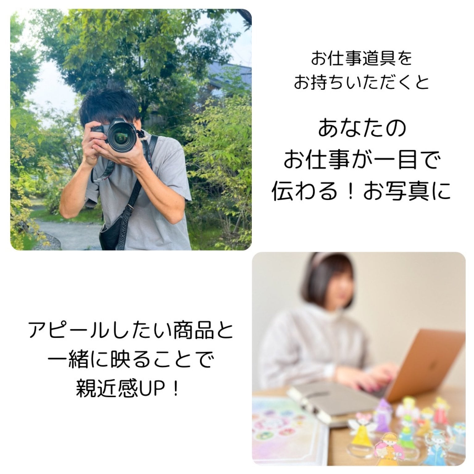ご自身の事業に関係するものやお客様に与えたい印象があれば、それに沿った服装・持ち物など、ご持参ください。