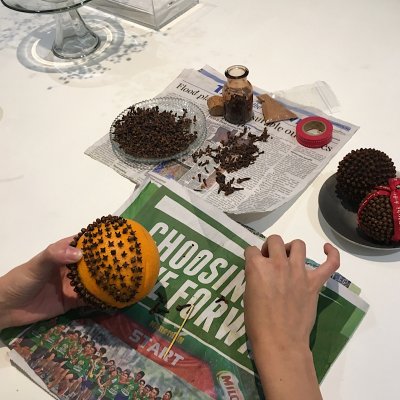 冬の定番になってきた、オレンジポマンダー作り。