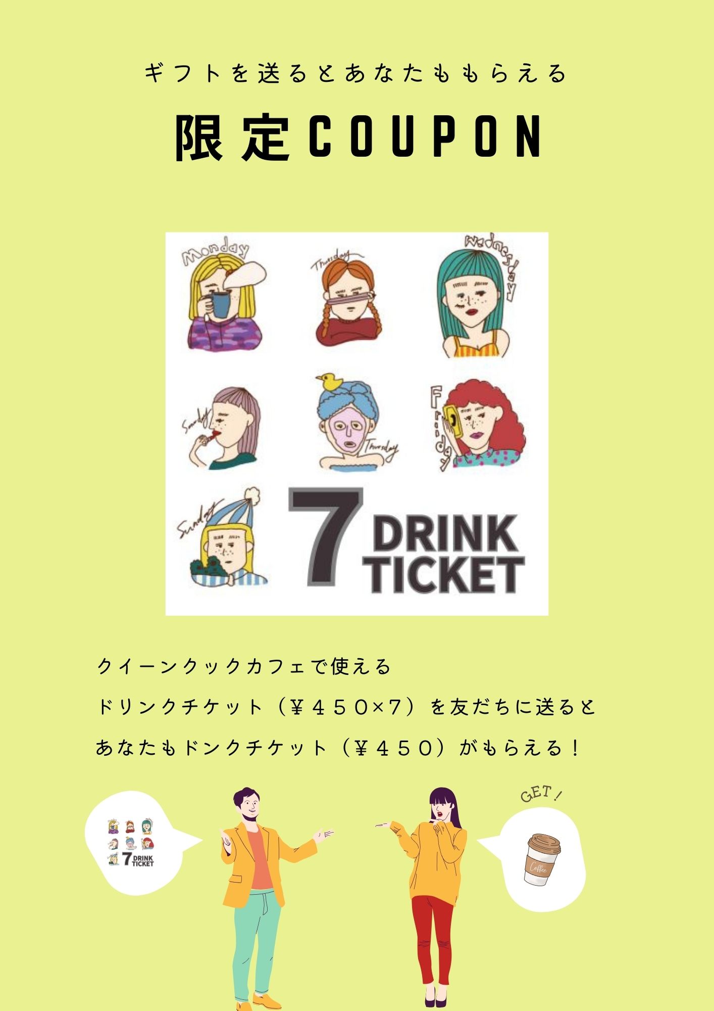 ドリンクチケット(¥450×7)を友だちに送るとあなたもドンクチケット(¥450ポイント)がもらえます!