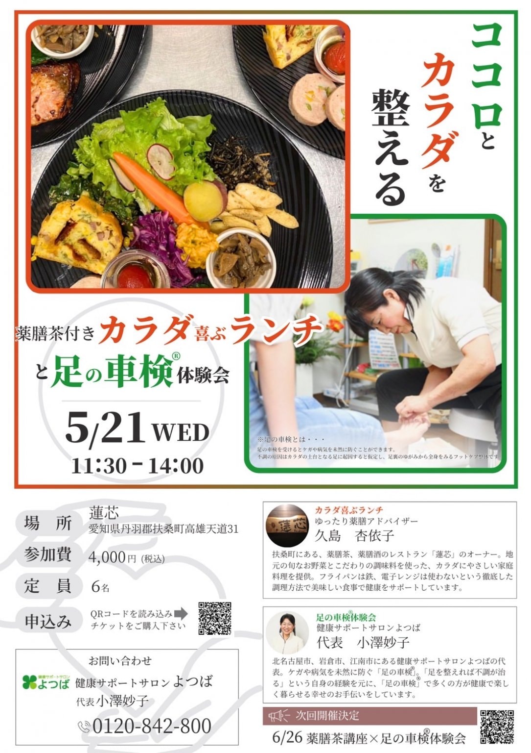 足の車検の体験会と薬膳ランチイベント参加チケット(1名様分)です。