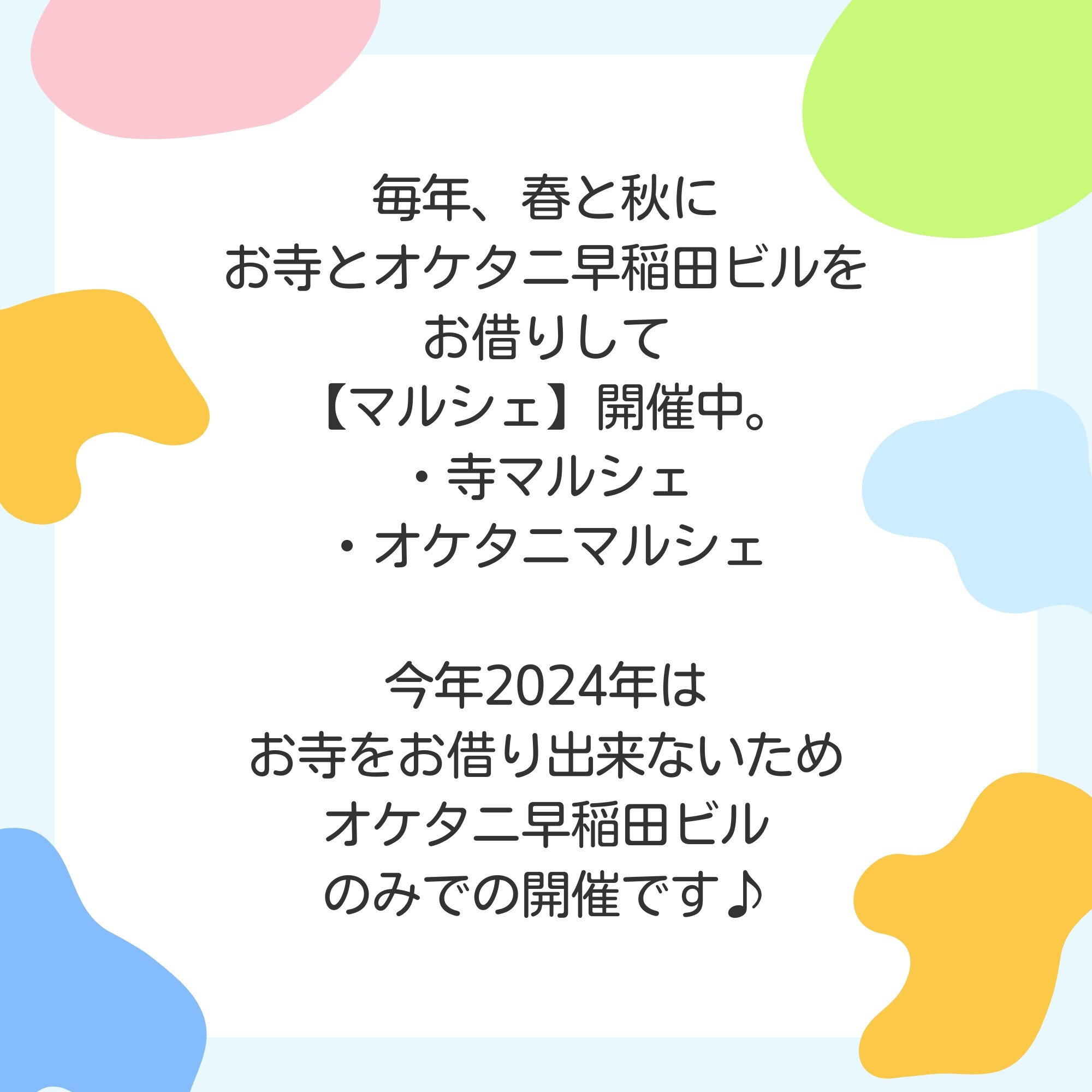毎年、春と秋にお寺とオケタニ早稲田ビルをお借りして【寺マルシェ】開催中。