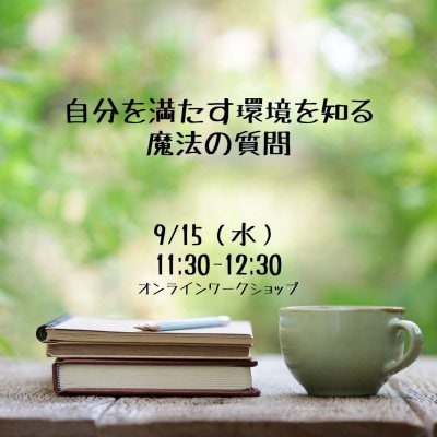 【zoom】9/15(水) 11:30『自分を満たす環境を知る 魔法の質問』オンラインワークショップ(60分)の参加チケットです。