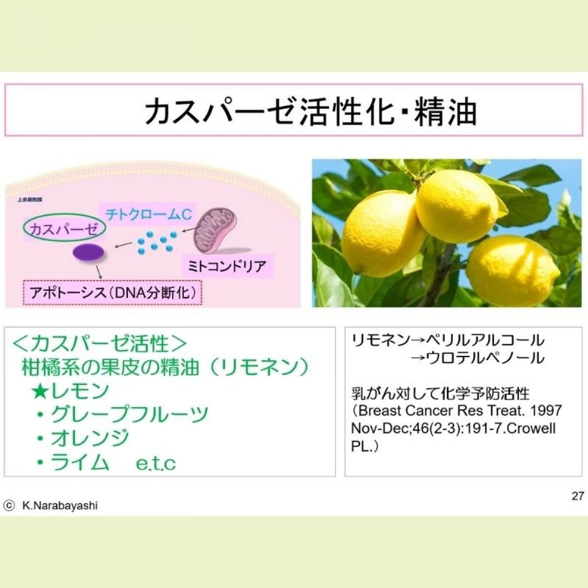 また、ヒト乳がん細胞の数を減らすことが示されている精油の紹介と
