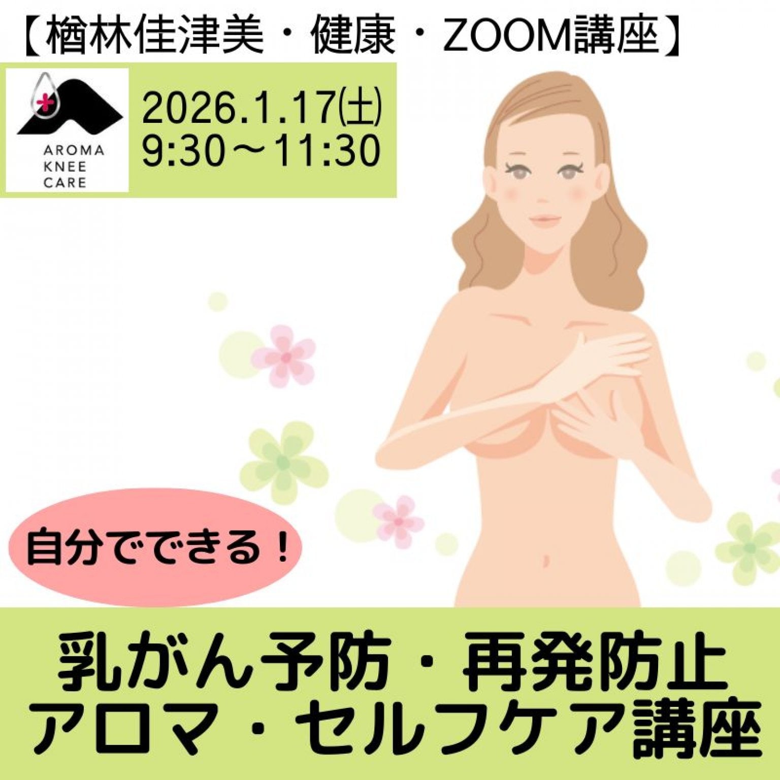 【自分で出来る!乳がん予防・再発防止・アロマセルフケア・ZOOM講座(女性限定)】
