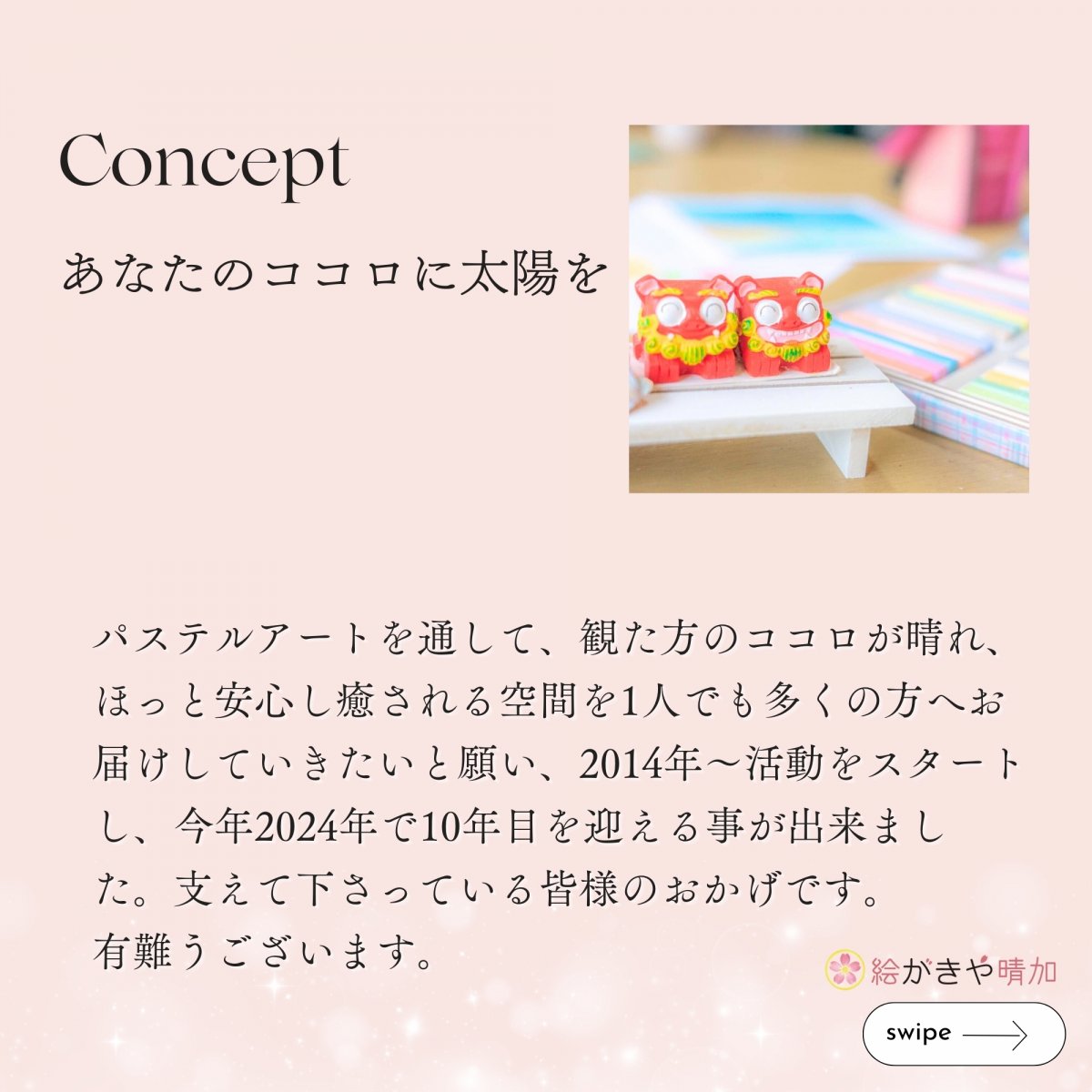 観た方のココロが晴れ、ほっと安心し癒される空間を1人でも多くの方へお届けしていきたいと願い、2014年〜活動をスタートし、今年2024年で10年目を迎える事が出来ました。支えて下さっている皆様のおかげです。有難うございます。