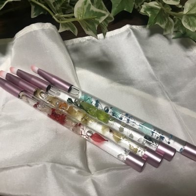 手持ち部分は、ハーバリウムオイルで作製しています。