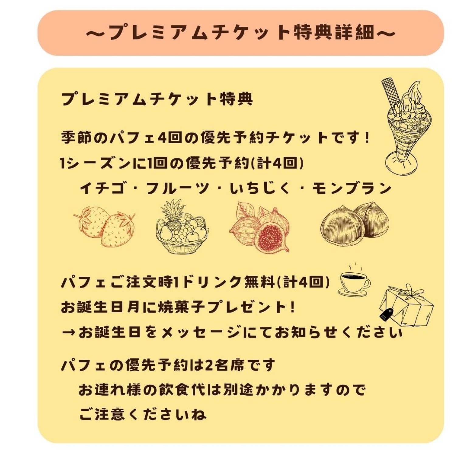 1.完全予約制パフェの全シーズンパフェを優先予約でお取りします