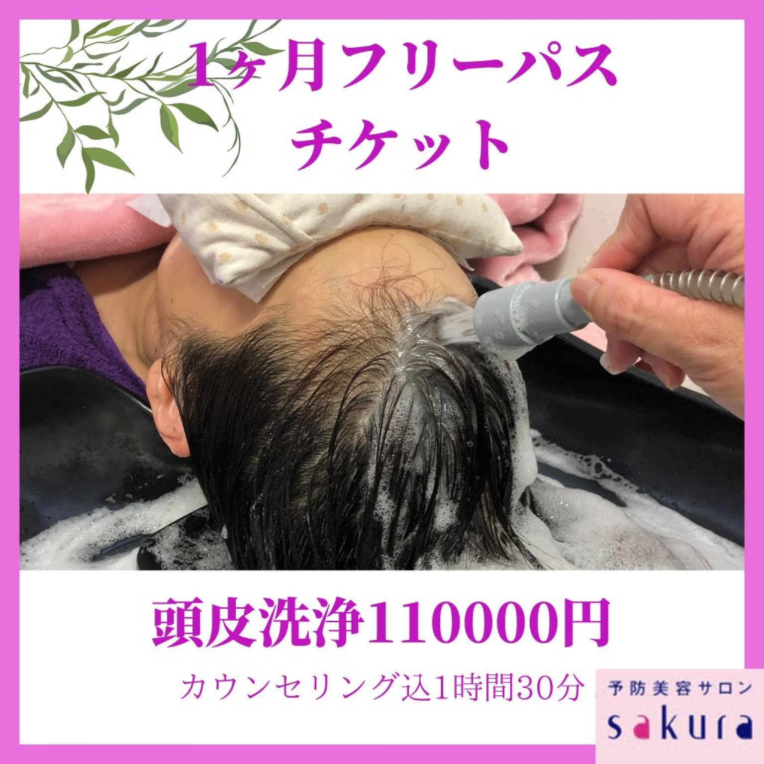 1ヶ月の間フリーパスで頭皮洗浄(90分)の施術を受けて頂けます。