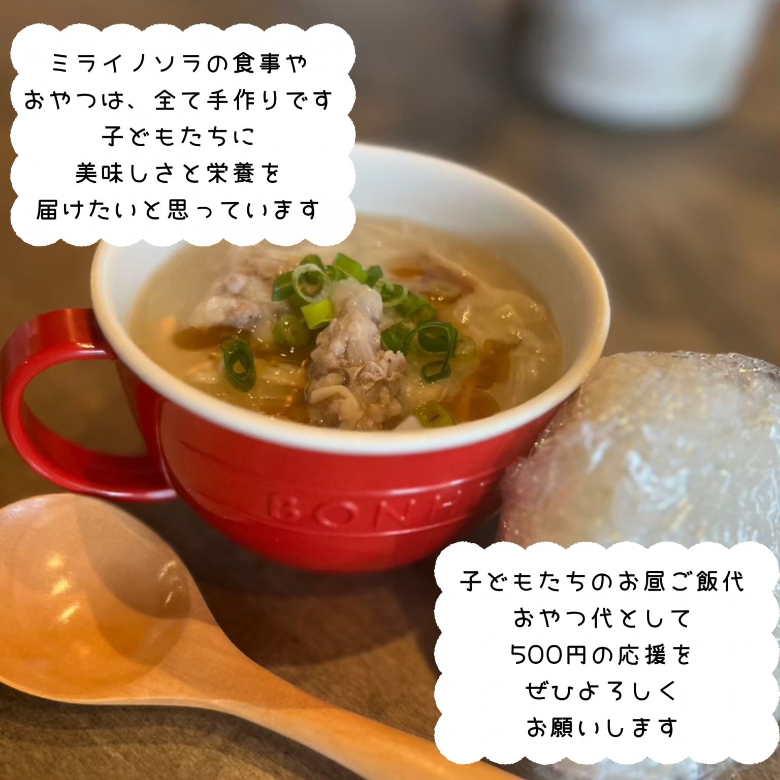 みなさんからの応援は、この食事代やおやつ代に変えさせていただき、子どもたちの健康サポートに使わせていただきます。