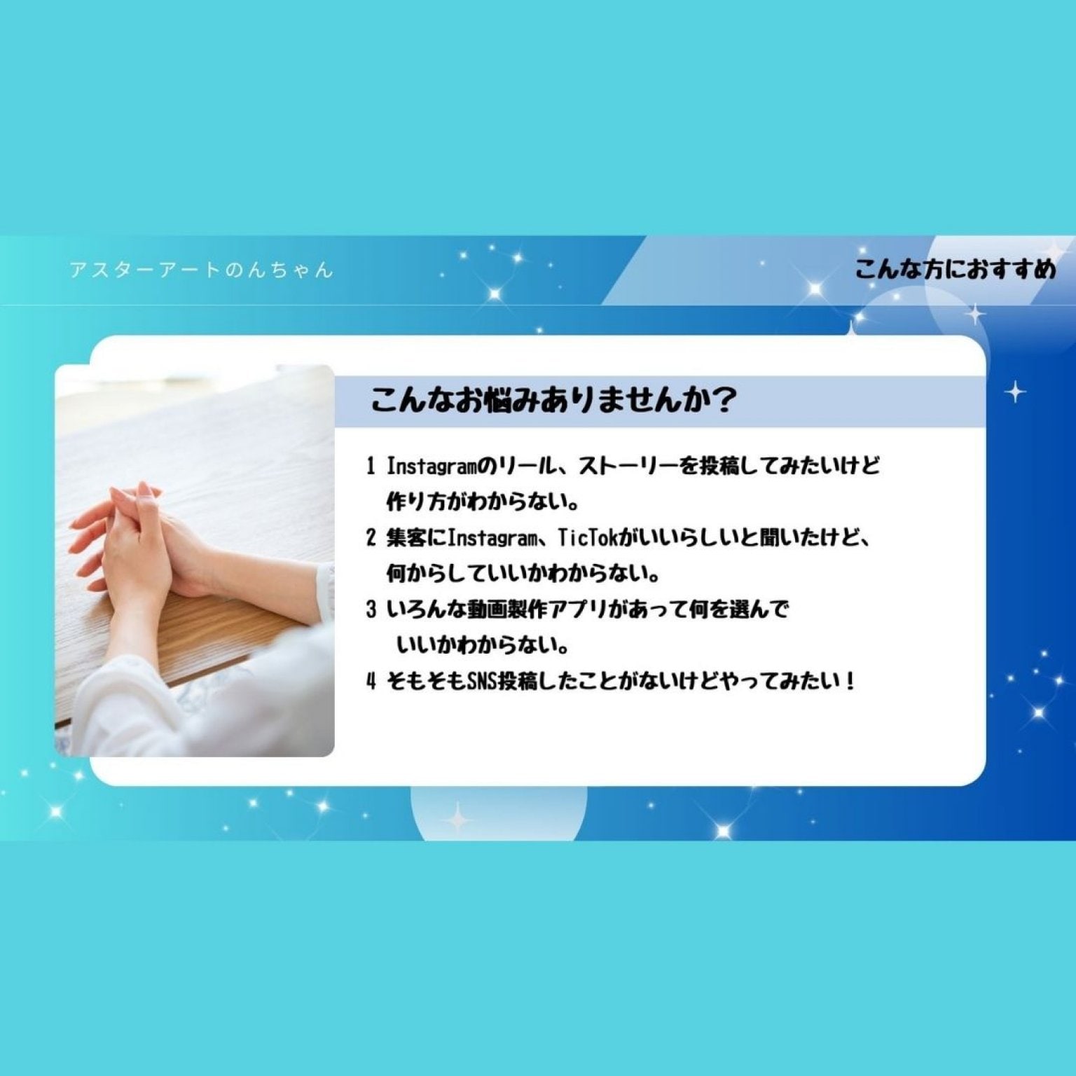 ・集客にInstagram、TicTokがいいらしいと聞いたけど、何からしていいかわからない。