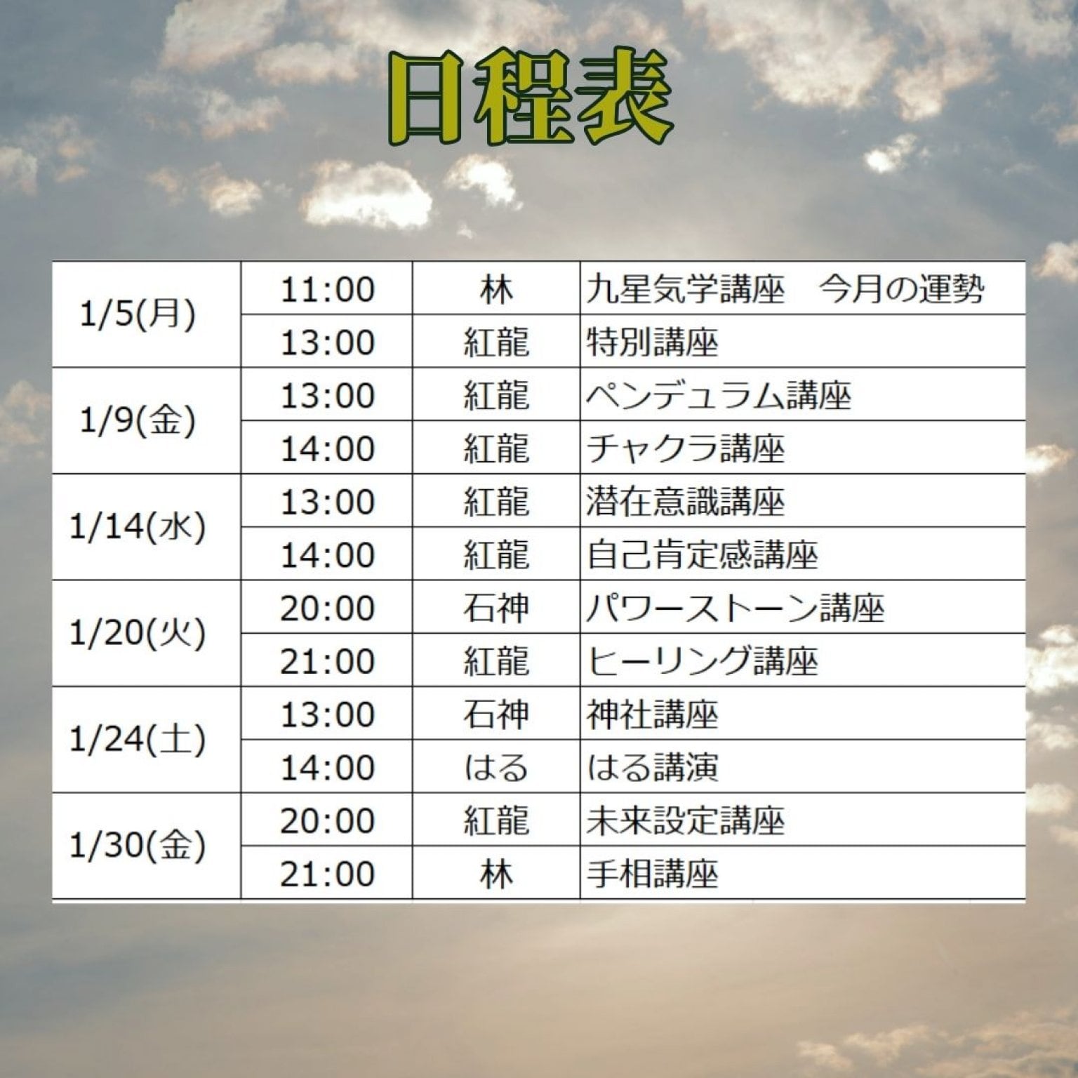 1/14(水) 13:00 紅龍 潜在意識講座