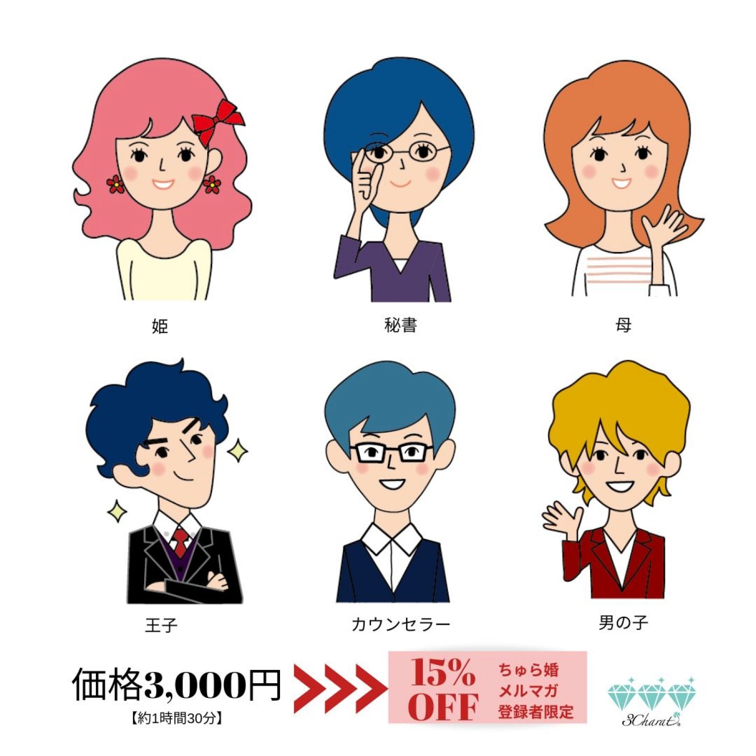 女性の魅力は【姫・秘書・母】、男性の魅力は【王子・カウンセ ラー・男の子】
