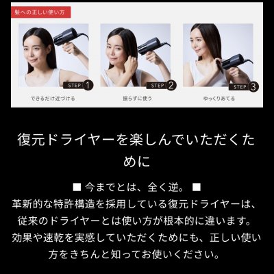 復元ドライヤーは、これまでのドライヤーと使い方が違いますよ!