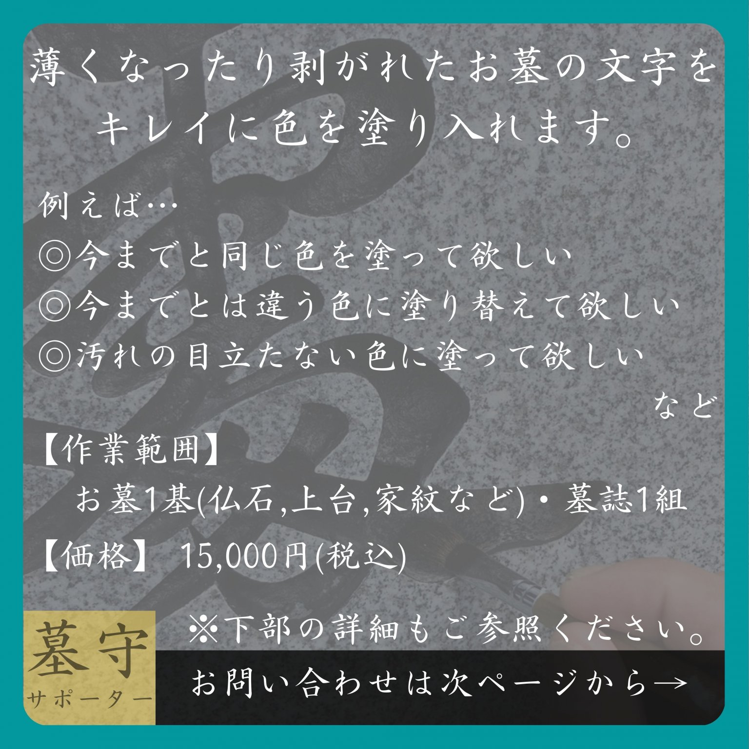 私たち【墓守サポーター】が色の塗り替えサービスを行なっております。