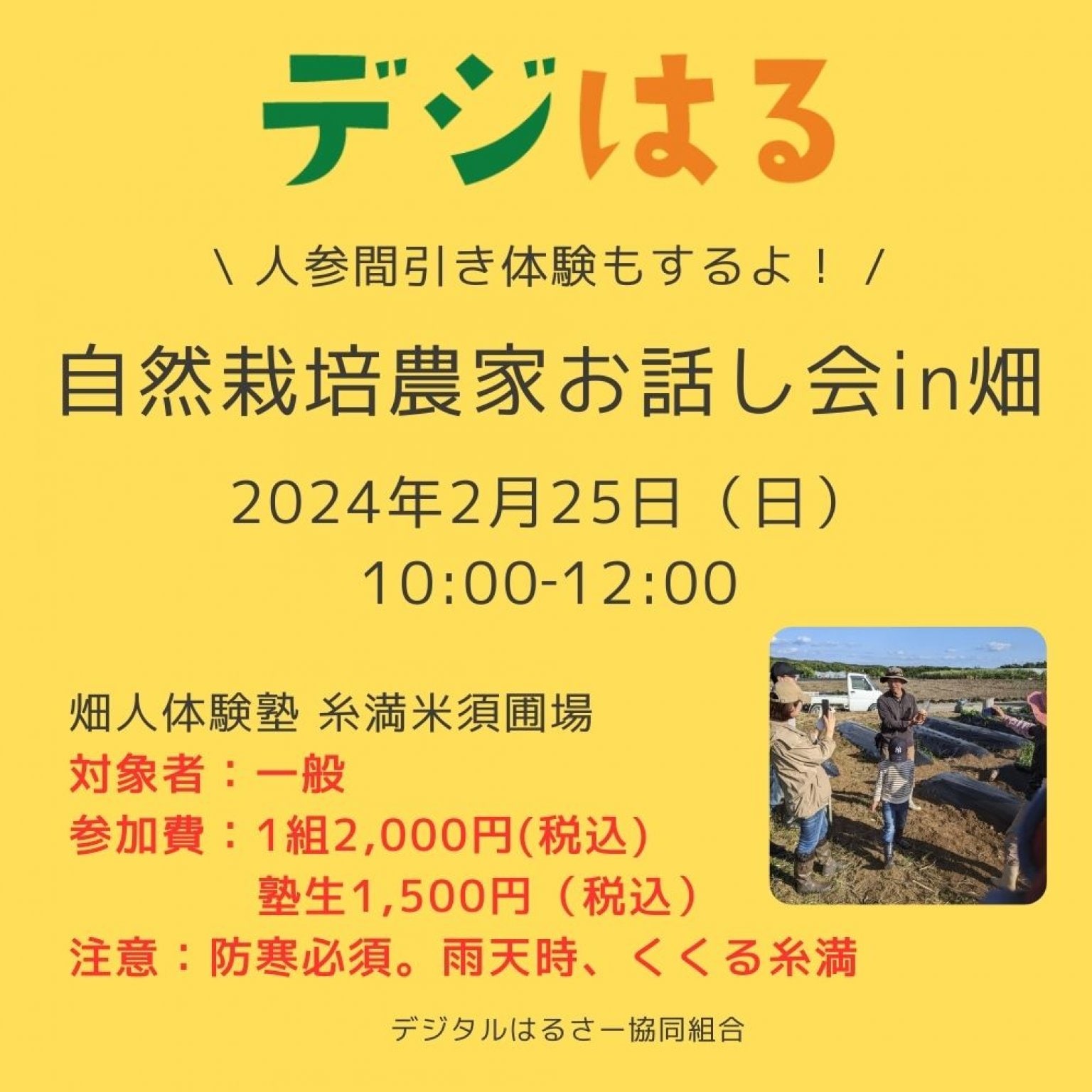 2月25日(日)10時から糸満市米須の畑で「自然栽培農家お話し会」を開催いたします!